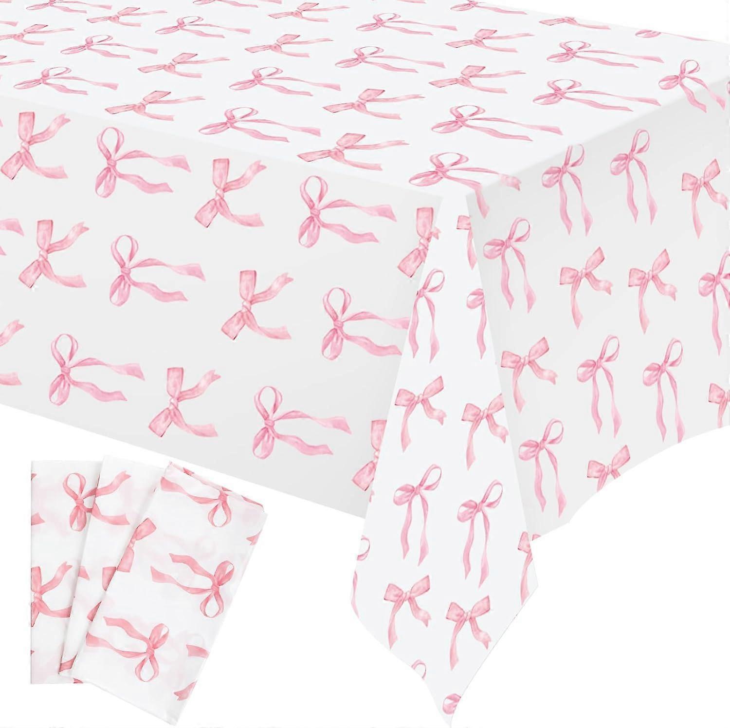 3 Pcs Pink Bow Table Cloth 54 x 108 Inch Coquette Bow Table Cover Rectangle Pink Tablecloth Disposable Tablecovers Coquette Party