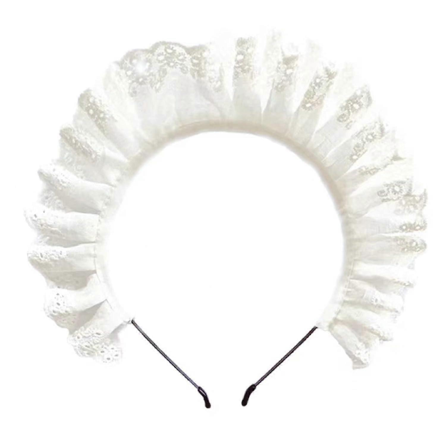 White Lolita Pleated Laces Hair Hoop Hollow-Out Pattern Headband Makeup Wash Face Hairhoop Cosplay Party Headpiece Maid Hair