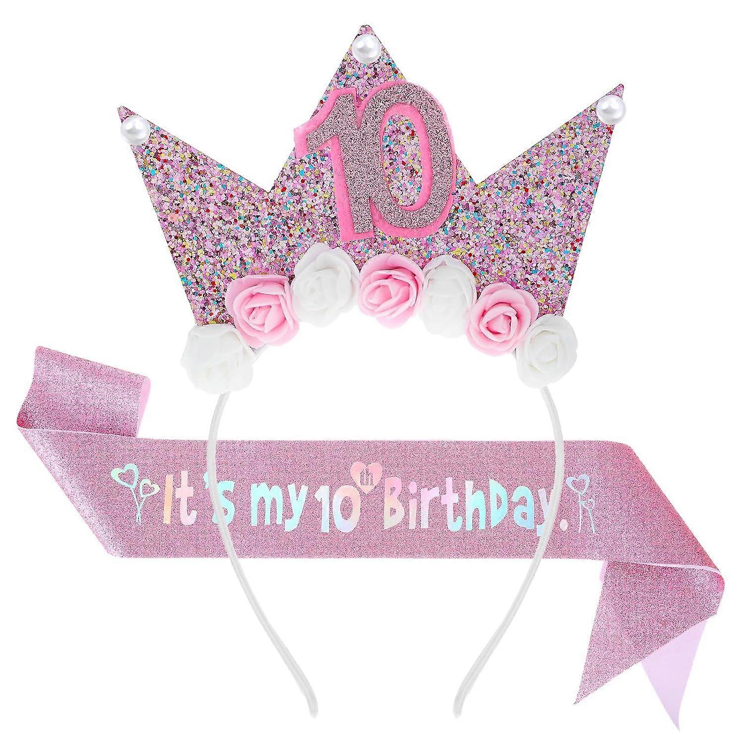 10th Birthday Sash and Crown Set for Girls 10th Birthday Decorations for Girl Happy Birthday Girl Tiara and Sash Birthday Outfits for Girls