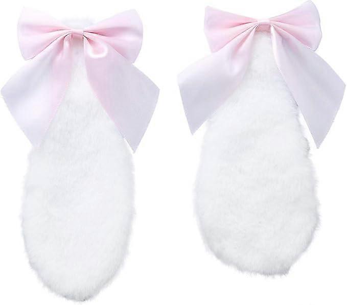 1 Pair Girls Bunny Plush Lop Ears Hair Clip Rabbit Furry Ears Ribbon Bow-knot Hair Hairpin Cosplay Headwear Easy to Wear Ornaments,and