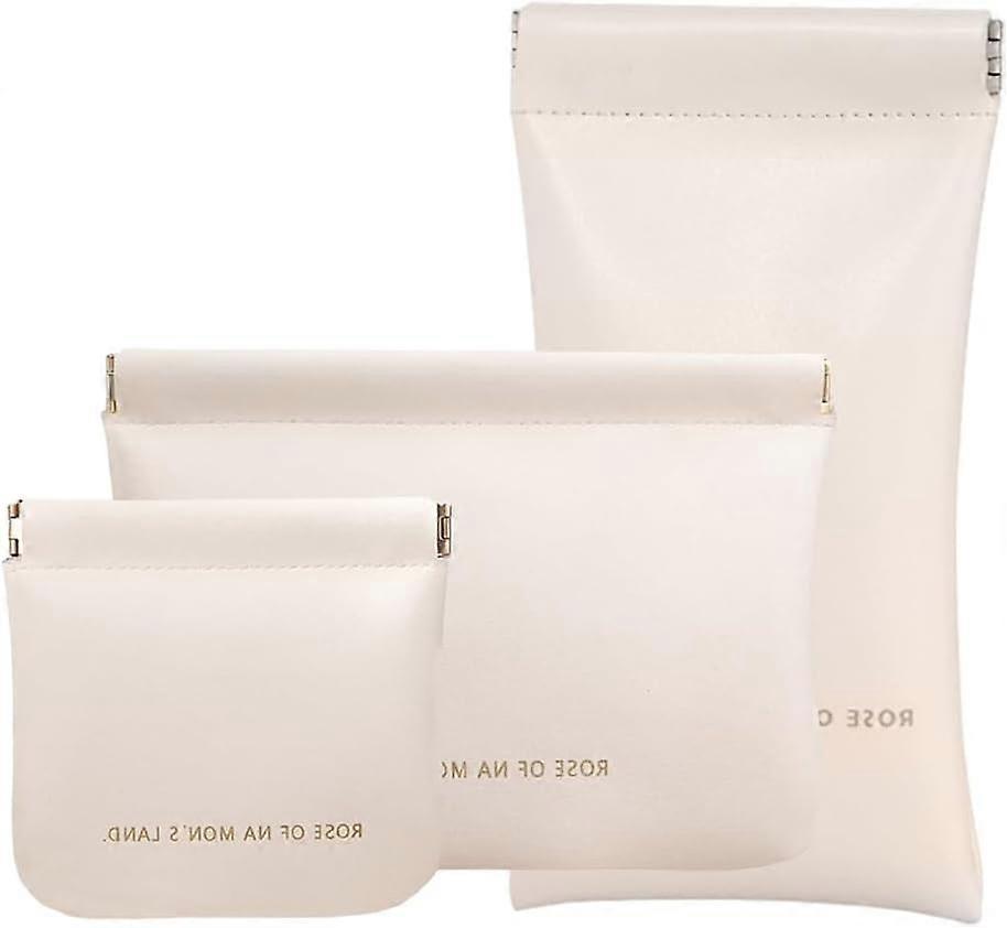 <p> Made of premium PU leather material, which is soft and Lustrous. Waterproof surface is easy to clean and keep your cosmetics dry at all times. </p><p> You can get 3 different sizes of makeup bags, which are lightweight and soft. Makeup bags of different sizes also have different functions, which can meet your daily needs. As storage bags, glasses bags, etc, you can store items according to your daily needs. </p><p> Equipped with electroplated iron shrapnels which can be quickly recovered after pressing, and not easy to deform. You can access the item in the bag with one hand operation. </p><p > This storage bag can hold your various items, makeup, skin care products, and other accessories, such as eye shadow, lipstick, eyebrow pencil, perfume, cream, makeup brushes, electronic product, etc. And get them in easy reach. </p><p > We want you say goodbye to the hassle and uncertainty of bulky traditional makeup bags. </p><p > Our makeup bag is designed to be carried with you wherever you go, helping you look and feel your best no matter the time or place. </p><li>One Small Size:3*7INCH</li><li>One Medium Size:4.5*4.6INCH</li><li>One Big Size:5.5*7.1INCH</li><li>Easy to Access and Use</li><li>Stay Organized On The Go</li><h4 > Waterproof </h4><h4 > Large Capacity </h4><h4 > No Zipper Design </h4><h3 > Multi functional Bags </h3><h4> Size </h4>