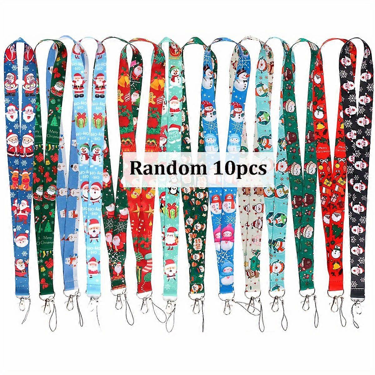 10pcs BKBKAAK Christmas Lanyards - Assorted Festive Designs (Santa, Snowmen, Reindeer) with Metal Clasps, Durable Fabric [jkw]