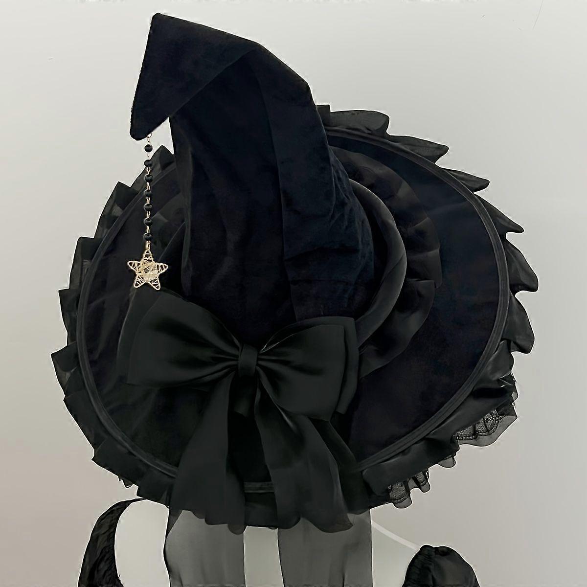 1pc Vintage Gothic Witch Hat with Large Butterfly & Pointed Toe - Lavender Ribbon Bow, Black & Purple Gothic Cosplay Cos [jkw]
