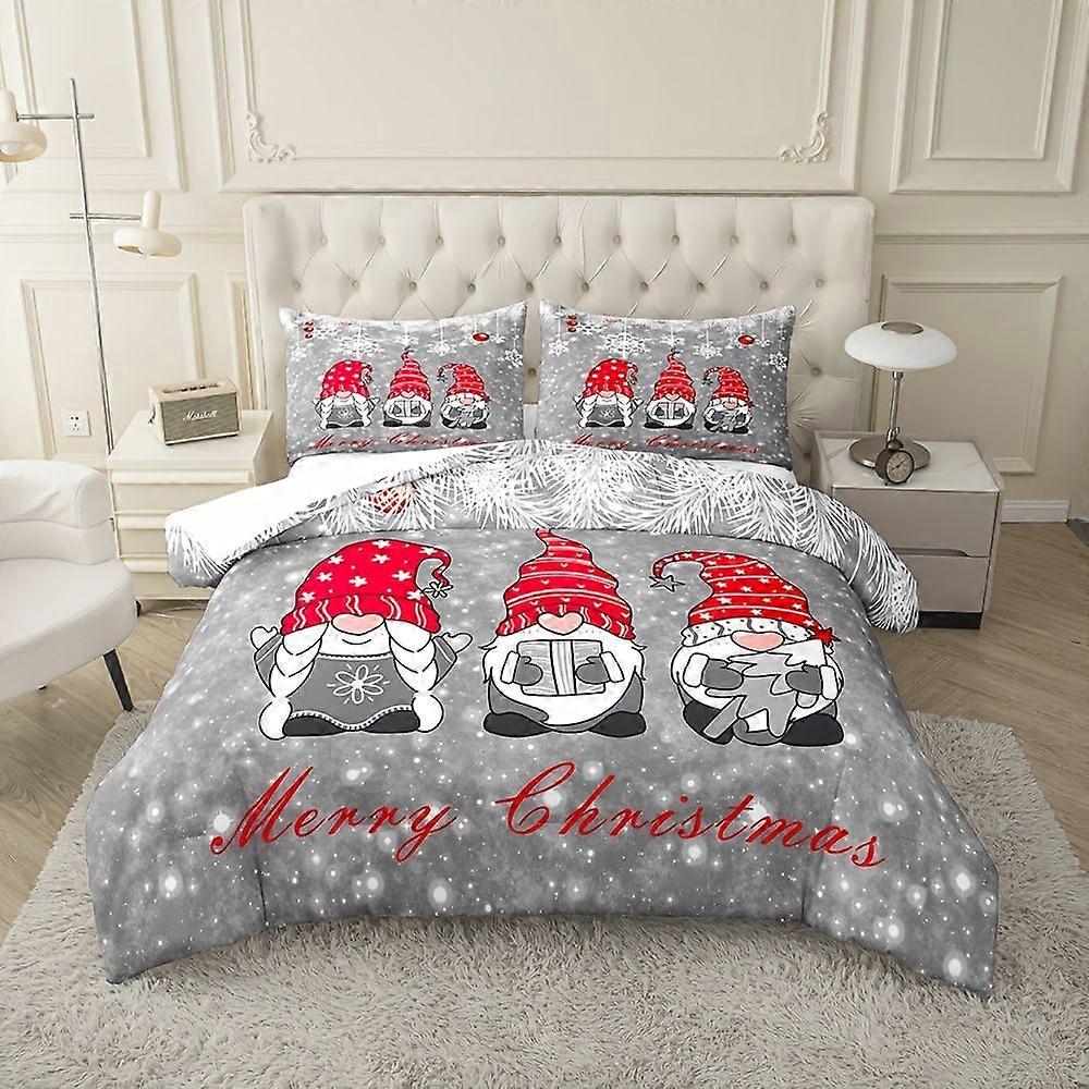 Christmas Gnome Cartoon Duvet Cover Set - 100% Polyester Breathable Fabric, Digital Print, All-Season Comforter Cover wi [jkw]