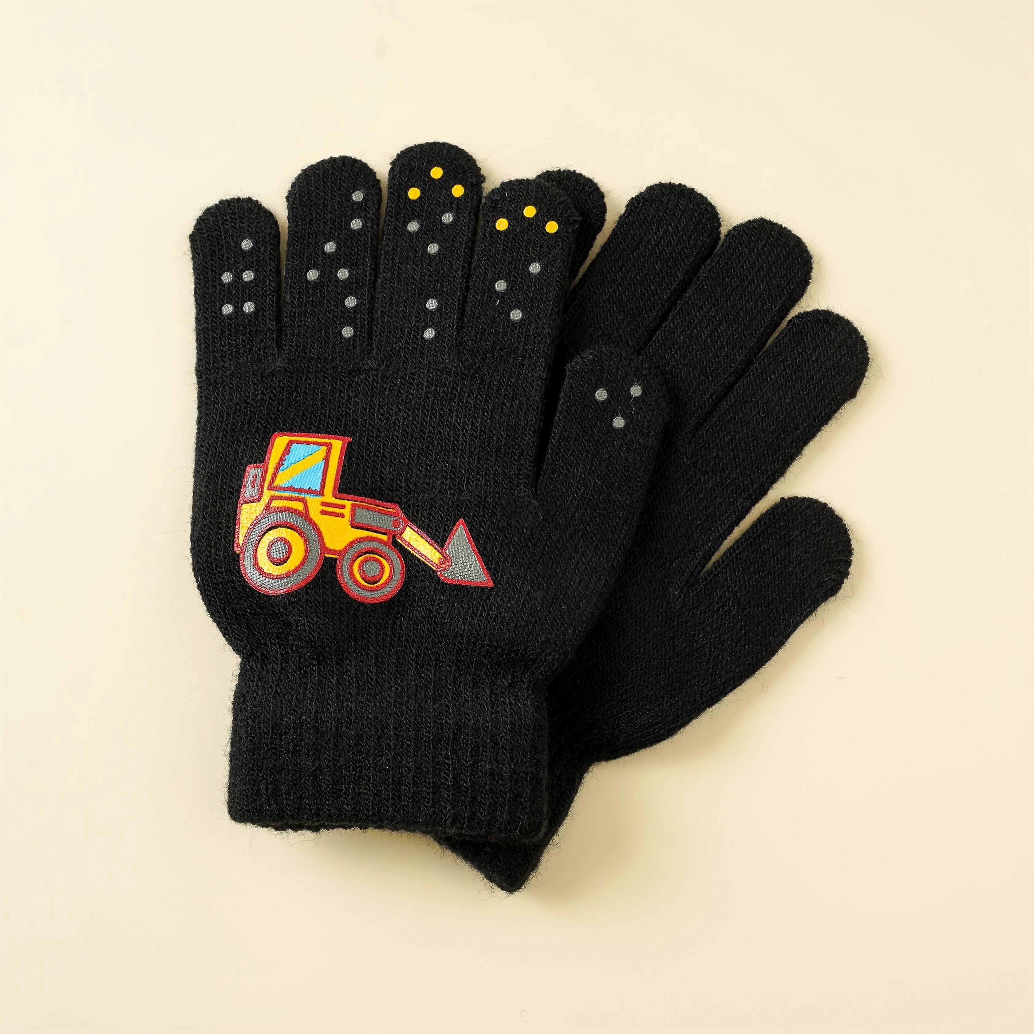1 Pair Kids Winter Warm Outdoor Sports Gloves with Cartoon Construction Vehicle Pattern, Thickened Fleece-Lined Knit Glo [jkw]