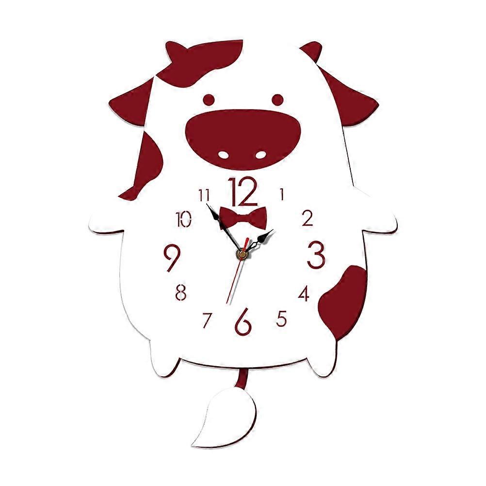 Children's Room Silent Clock Cartoon Cow Shape Wall Clock Household Bedroom Living Room Hanging Wall Clock Bar Decor without Battery (Red)