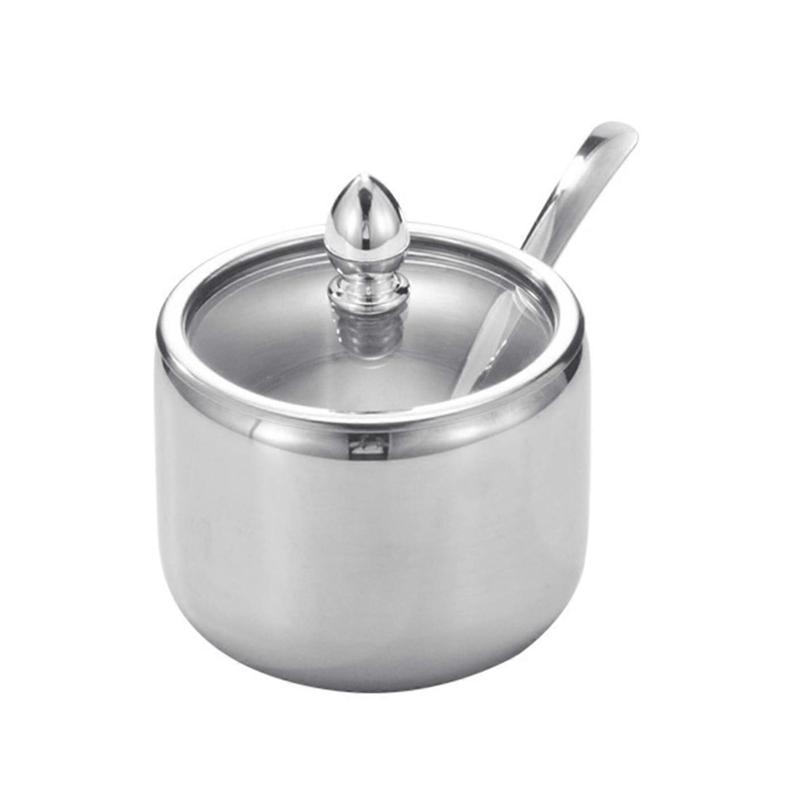 304 Stainless Steel Seasoning Jar Set, Visible Kitchen Spice Jars with Spoons, Bridge Type Salt Sugar Bottles Combo A, compatible with standard