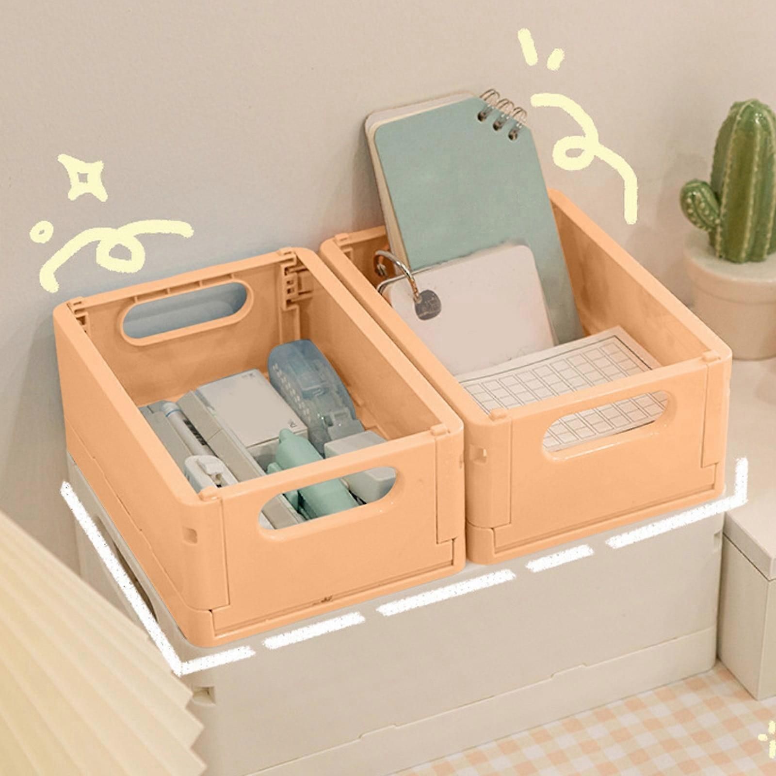 2PCS Desktop Folding Storage Basket Office Simple Book Snacks Toy Storage Basket Dormitory Makeup Storage Box School Office Essentials