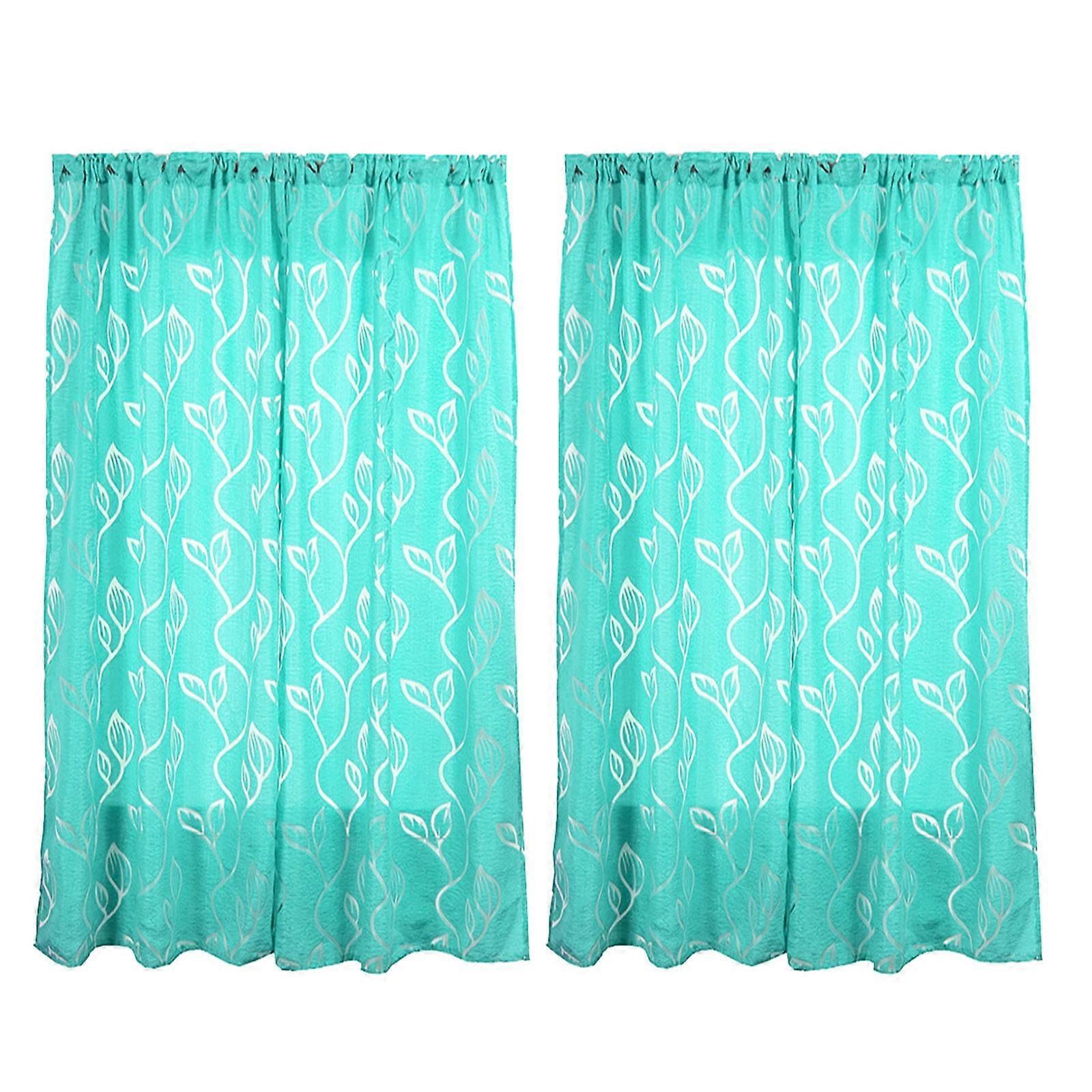Begine Clearance 1*2M High Curtain Peacock Blue,Vines Leaves Tulle Door Window Curtain Drape Panel Sheer Scarf,2X Curtains