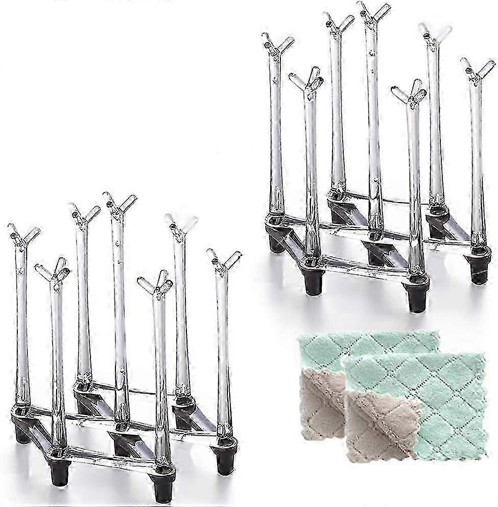 Retractable Cup Drying Rack, Drinking Glass and Sports Bottle Drainer Stand,Plastic Bag Dryer with Non-Slip Bottom for Kitchen Counter