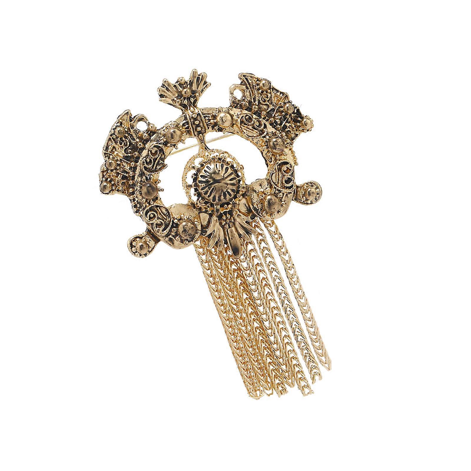 Vintage French Filigree Tassels Brooch Shimmering Flowing Metallic Fringe Decoration Pin Statement Coat Accessories Multicolor