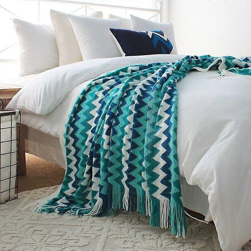 Stripe Wave Knitted Sofa Bed Throw Blanket Bedspread Settee Cover Rug BOHO
