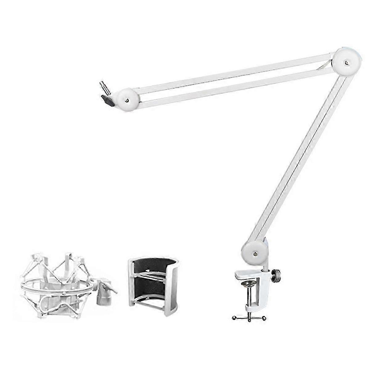 Mic Arm Stand for Recording,Podcasting,Adjustable Suspension Boom Scissor Arm Stand with Filter,Shock Mount White hwy