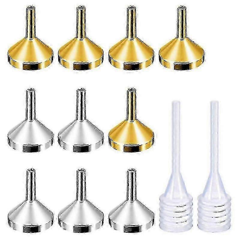10-Pack Small Metal Funnels with 2 Mini Pipettes - Silver Kitchen and Laboratory Essentials