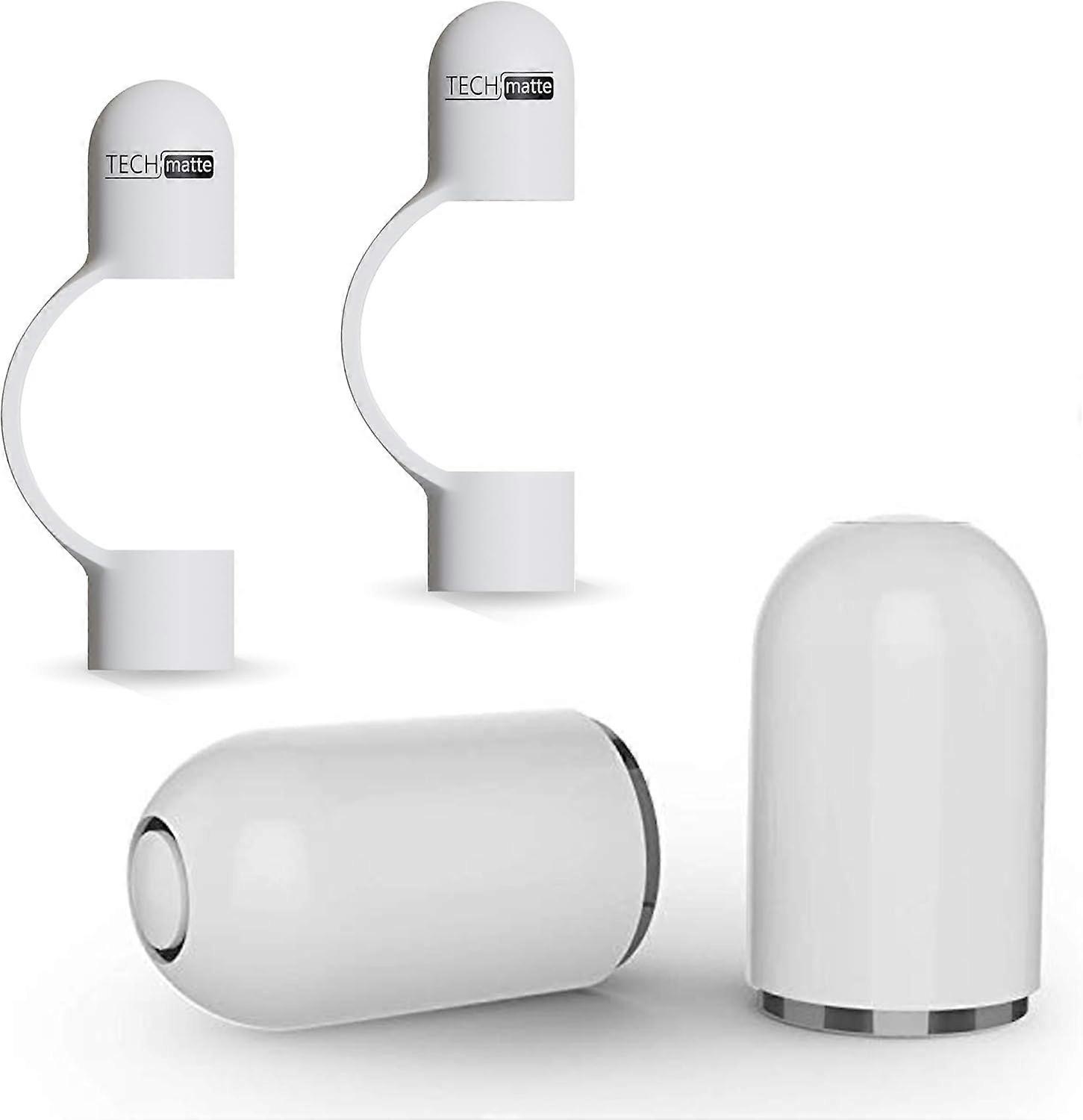 2025 Latest Model TechMatte Magnetic Replacement Caps Compatible with Apple Pencil 1st Generation - Cap Holder Included (2-Pack) White