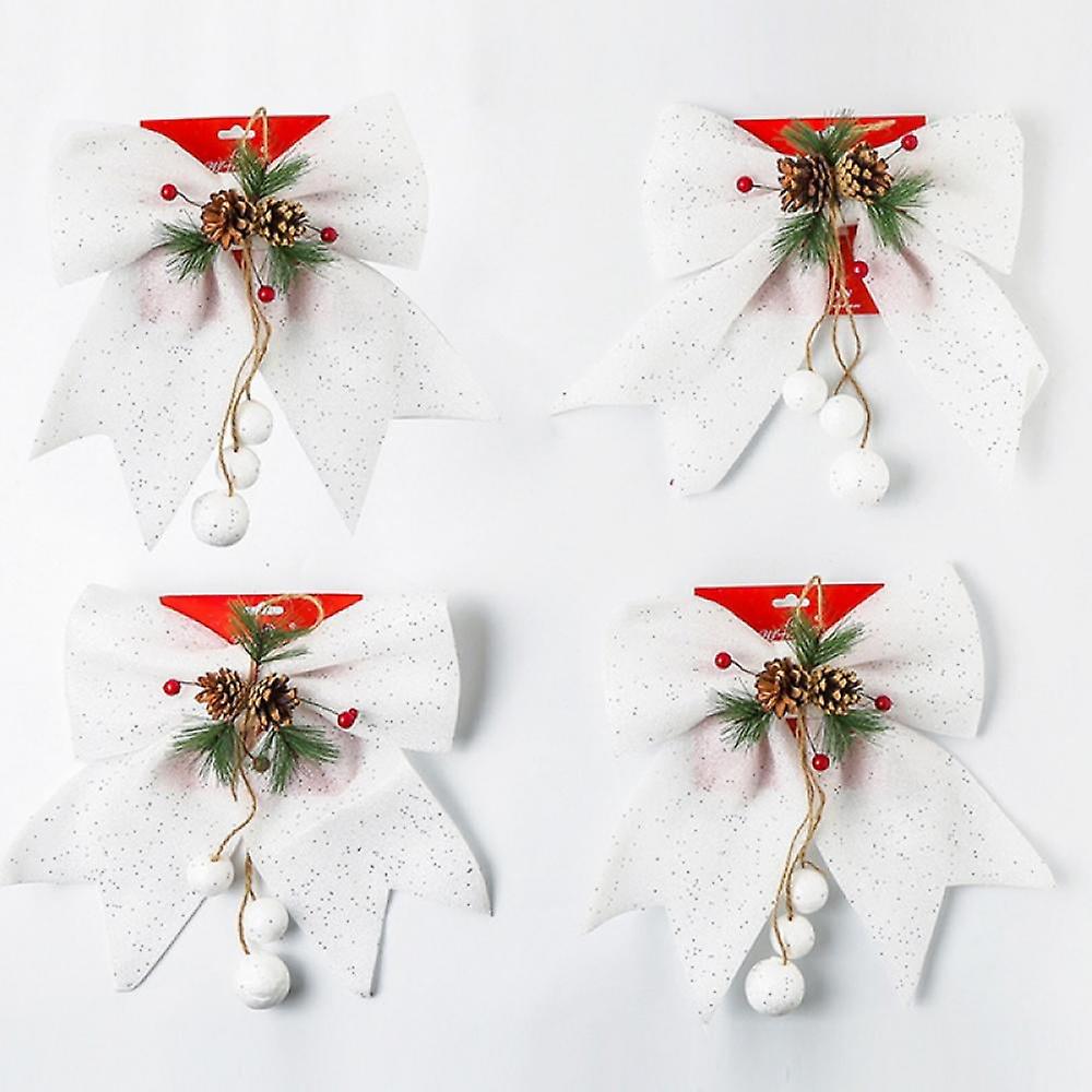 4pcs Christmas Decorative Bows with Pinecone, Glitter Xmas Tree Ornaments, Red Bows for Wreath Garland Treetop, Indoor Home Party Decor 9.8x11.8in