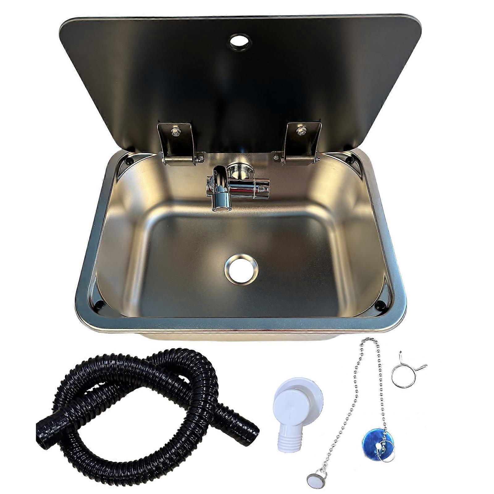 Portable 17Inch Stainless Steel Campers Bar Kitchen Sink with Foldable Glass Lid for Campers Boats and Outdoor Use Multicolor