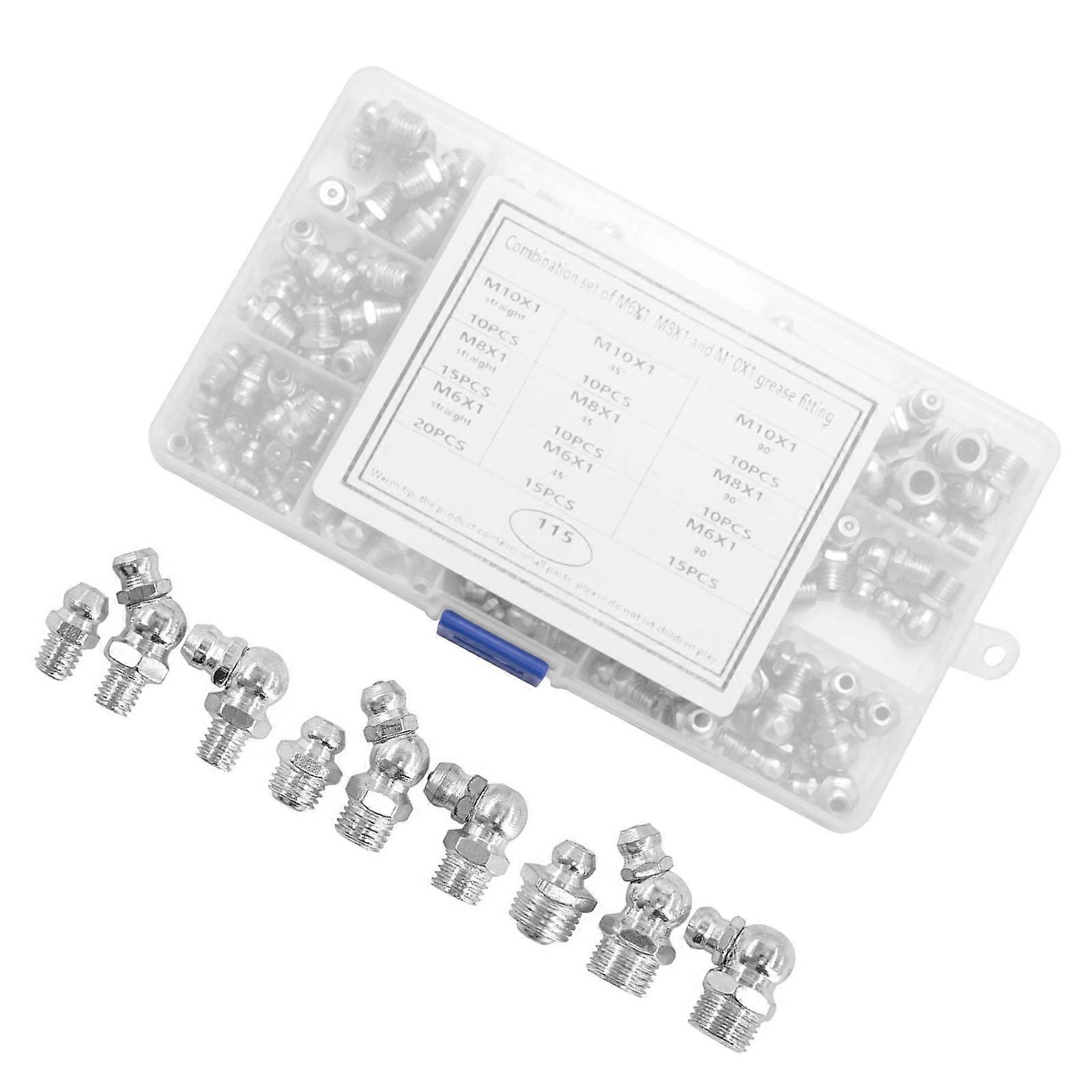 115Pcs Straight 45 90 Degree Angle Metric Hydraulic Grease Fittings Zerk Grease Nipple Fittings Assortment Multicolor
