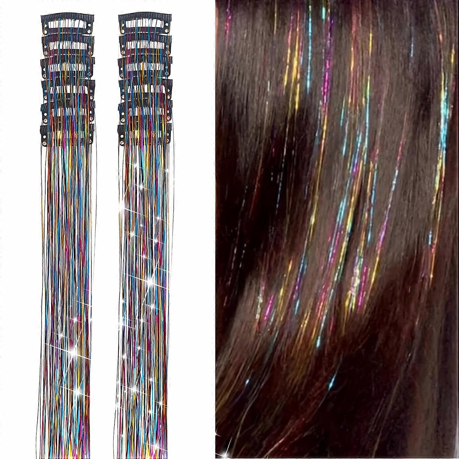 20inchSilvery12pcs Glittering Hair Glitter Clip-In Extensions - Sparkly Hair Accessories for Women - 19.6 inch Long, Synthetic, Heat Resistant, Glitt