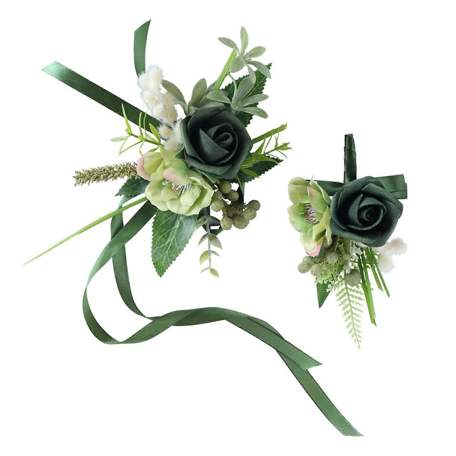 Handmade Silk Flower Wrist Corsage and Boutonniere Set Perfect for Theme Weddings and Festival Celebration 2PCS Multicolor