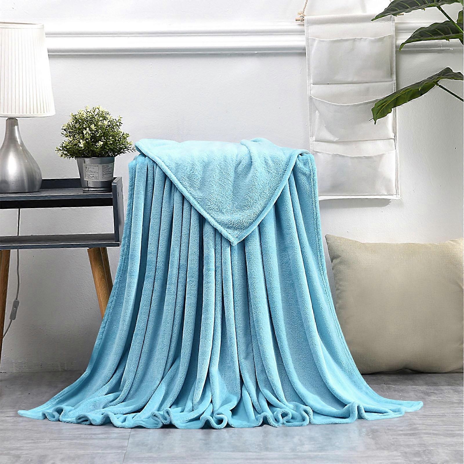 Large 30x40" Soft Baby Blue Flannel Fleece Throw Blanket, Lightweight Cozy Warm Jacquard Weave Wave Pattern for Couch Decor