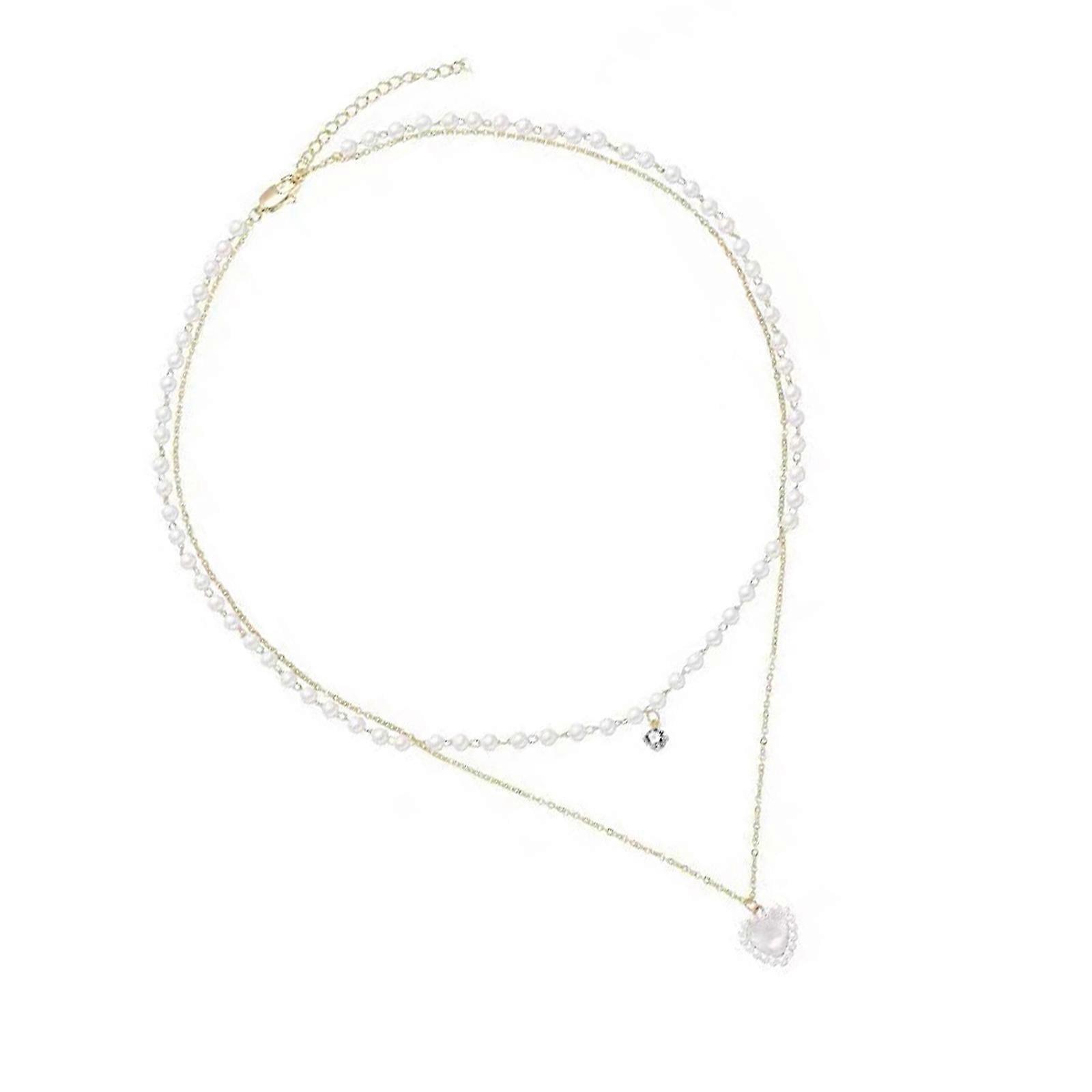 Heart Pendant Necklace Women Adjustable Chain Necklace Elegant Double Layer Necklace Suitable for Weddings and Parties Multicolor