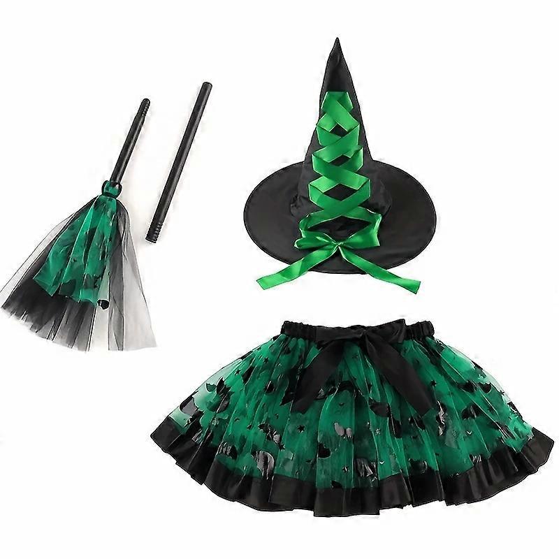 YellowHalloween witch costume set of 3 pieces - purple polyester skirt with black ribbon, pointed hat with ribbon and wand (FMY)