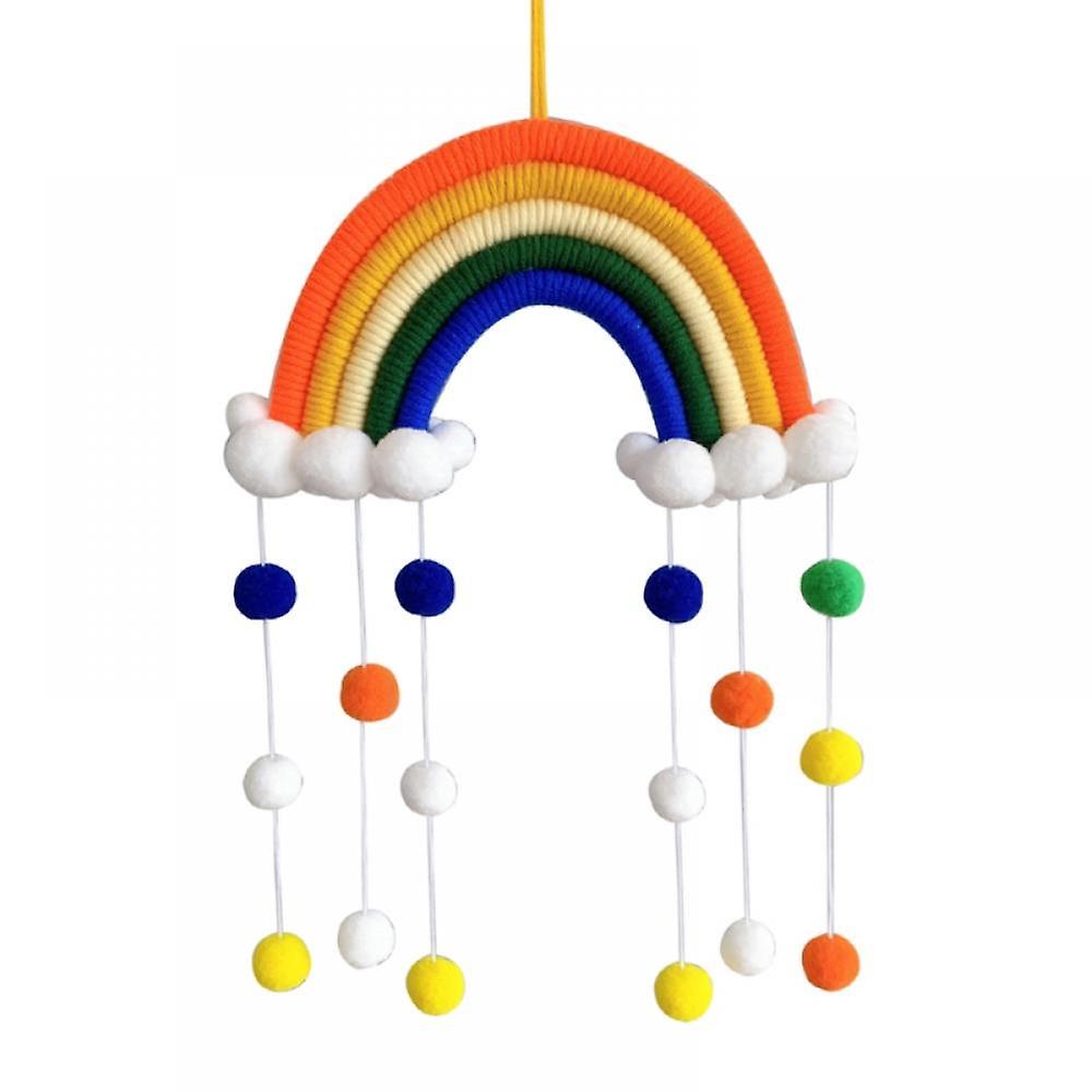 Macrame Handmade Woven Rainbow Wall Hanging, Colorful Cloud Ball Decor for Kids Room Bedroom Playroom