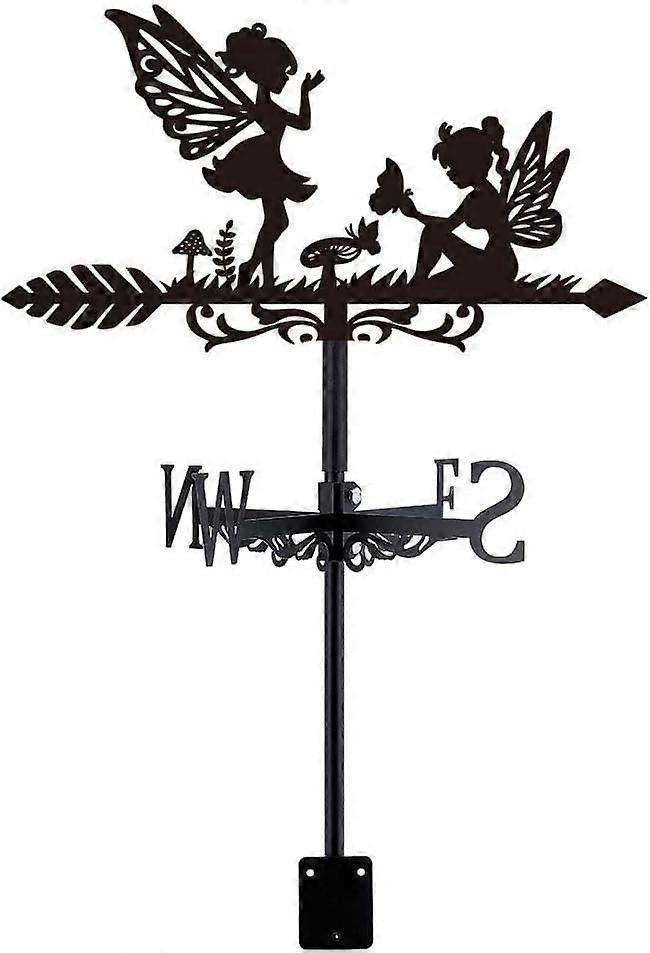 Fairy Weathercock Meadow Mushroom Metal Weathervane Black - Yard Wind Vane Compatible with Farmhouse Barn, Garden Roof Decor
