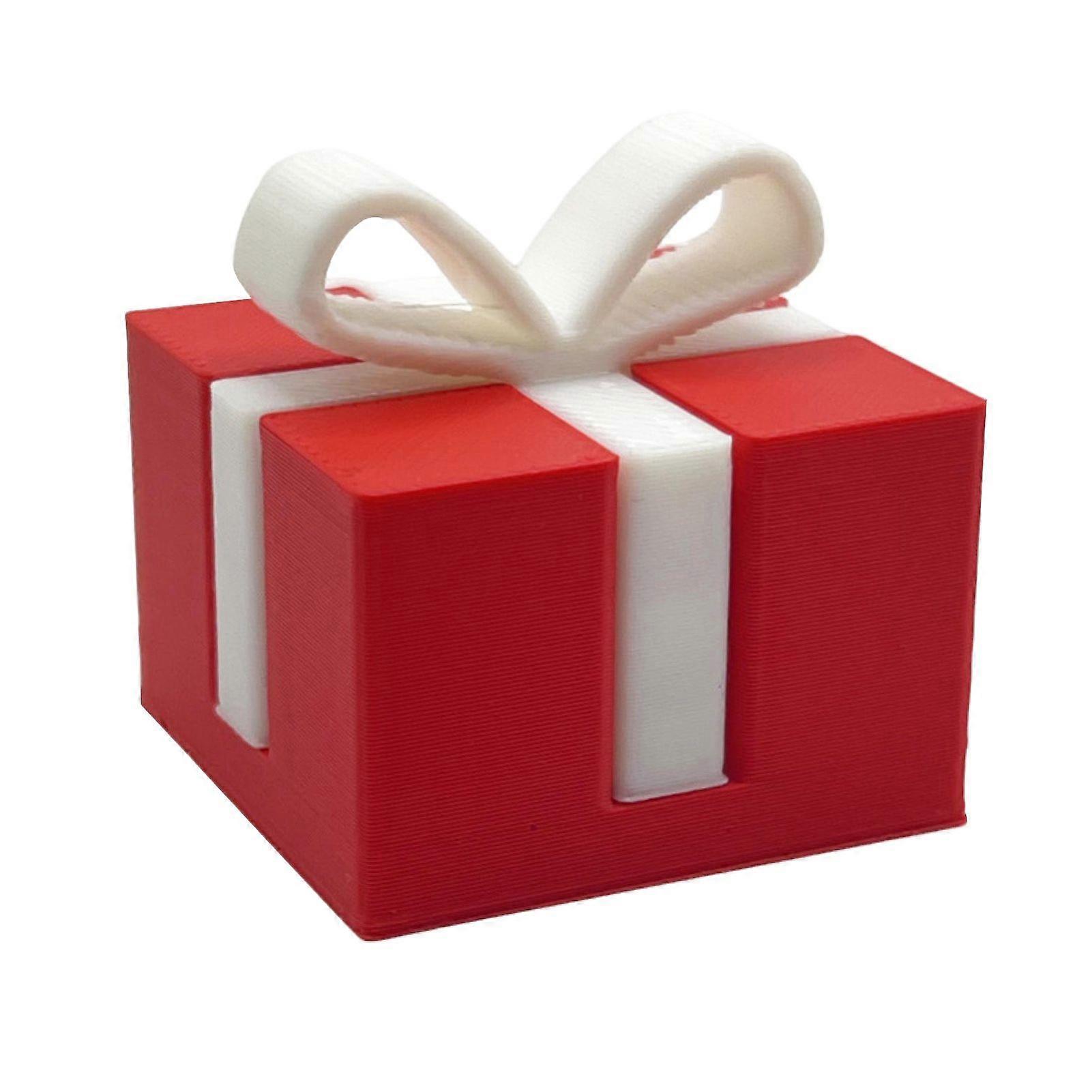 Kaesi 1/2/3Pcs Mini Christmas Gift Box Figurine 3D Printed White Bow Red Present Box Holiday Party Home Office Desktop Decoration Ornament