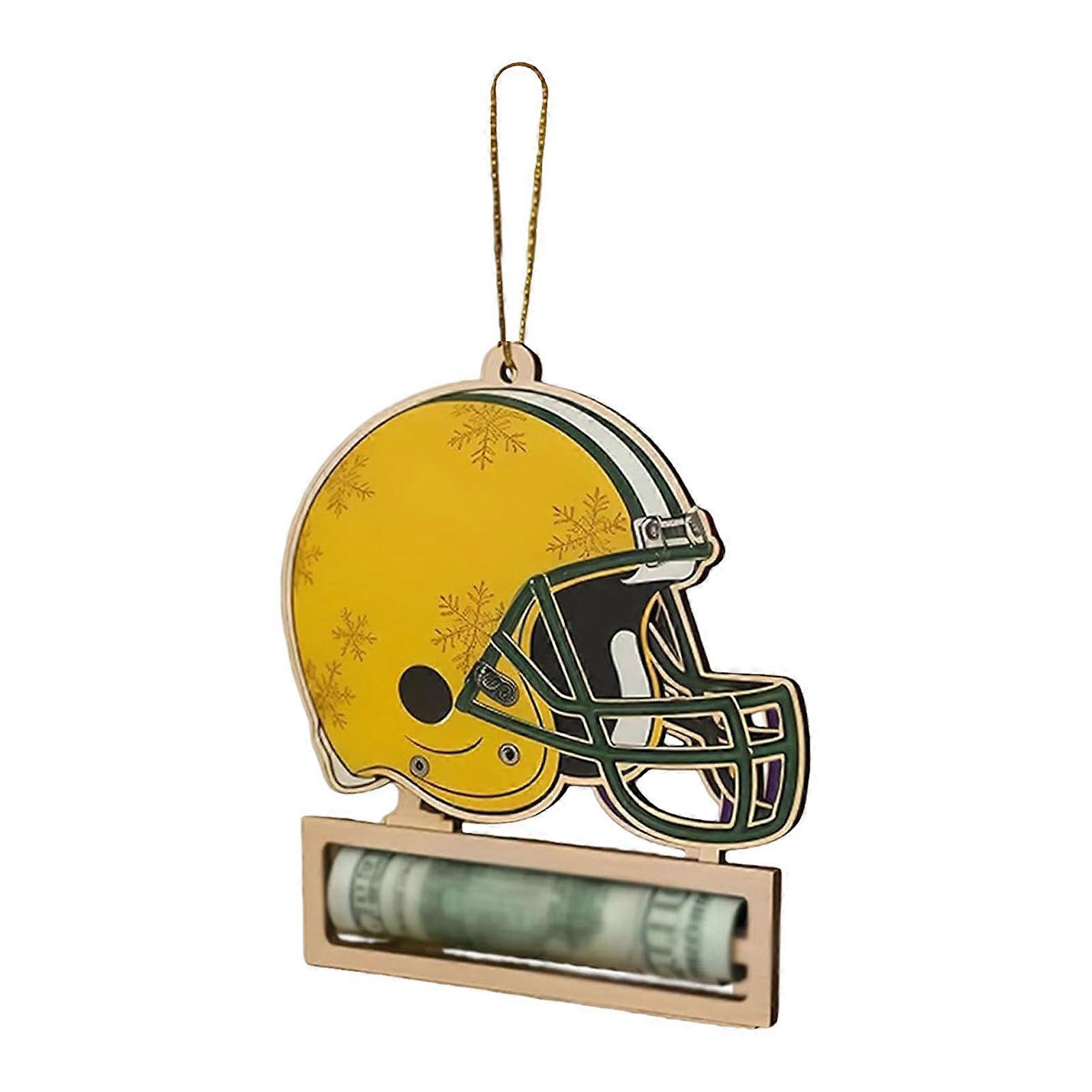 Kaesi Wooden Money Holder Christmas Ornament Football Helmet Cash Gift Card Holder Sports Fan Gift for Men Players Coaches