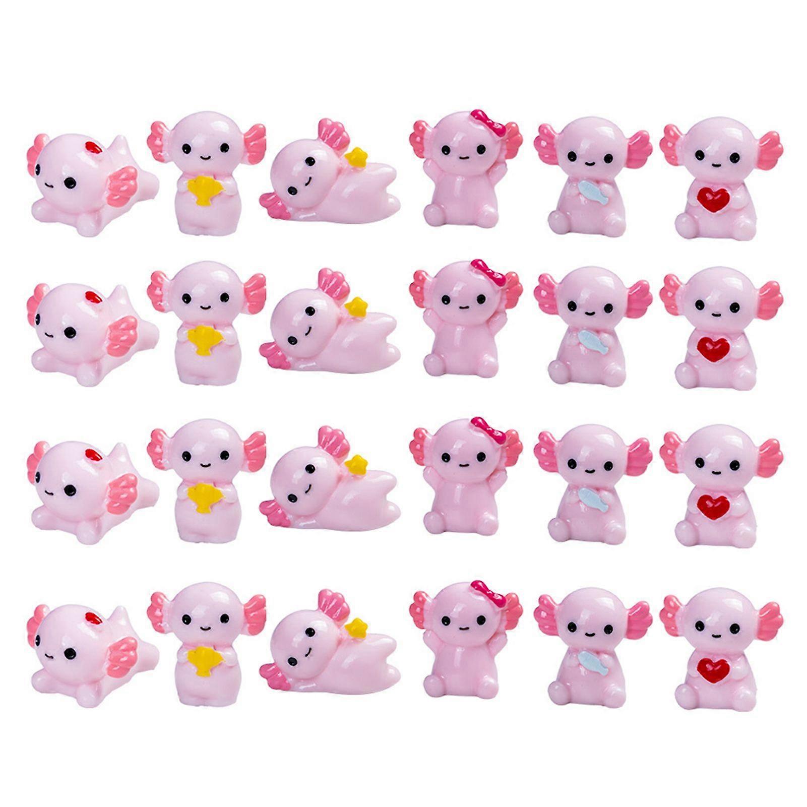 Kaesi 24Pcs Mini Pink Salamander Figurine Cartoon Salamander Resin Statue Miniature Animal Ornament DIY Dollhouse Car Dashboard Desktop Decoration