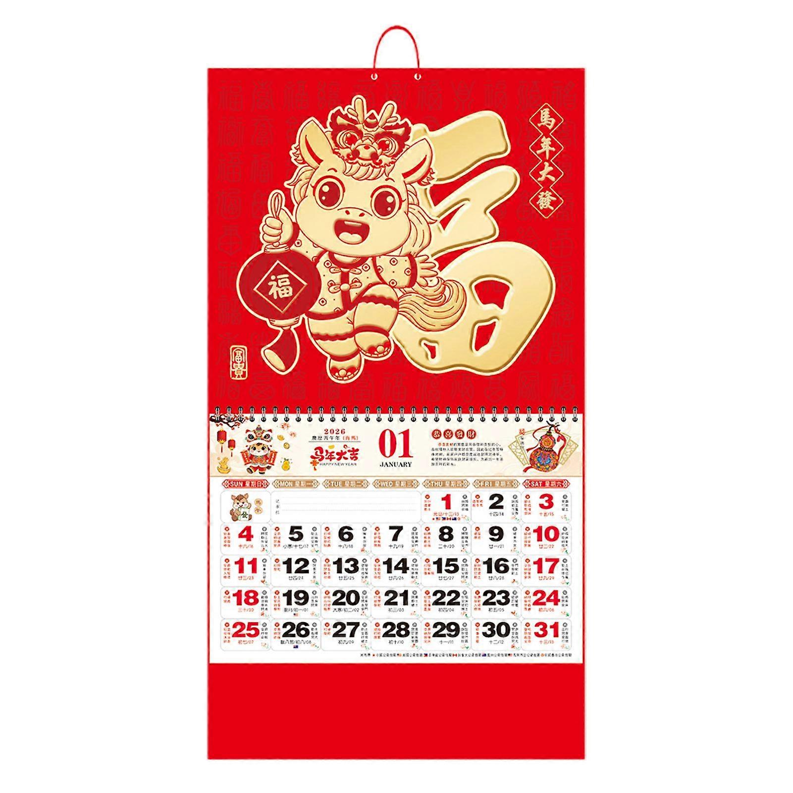 Kaesi 2026 Wall Calendar Chinese Year of Horse Hanging Calendar Lunar Monthly Calendar for Home Restaurant Office School Chinese New Year Decoration