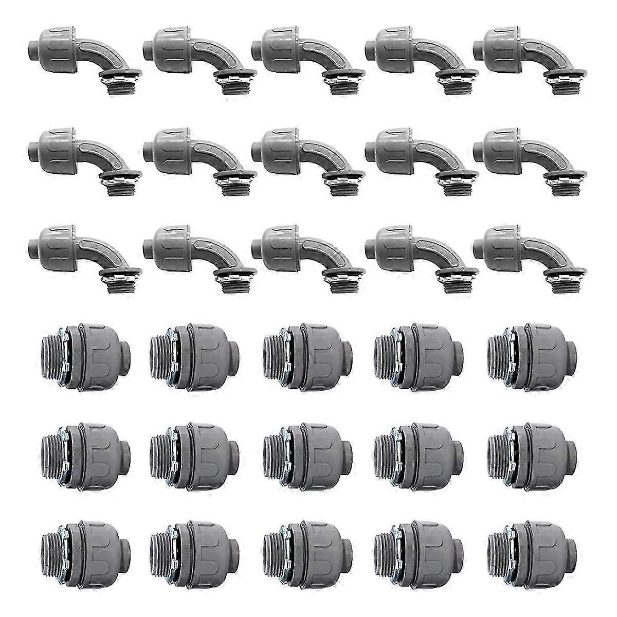 30Pcs,3/4In Liquid Tight Connector Non-Metallic Electrical Conduit Fittings, PVC Flexible Conduit (Straight+90 Degree)
