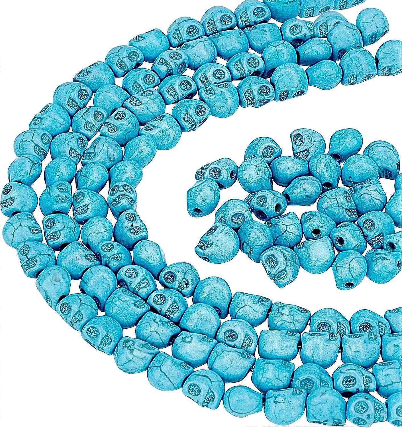 480 Pcs 10 Strands Sky Blue Skull Beads Synthetic Turquoise Skull Head Beads Skull Shape Stone Loose Beads for Jewelry Making