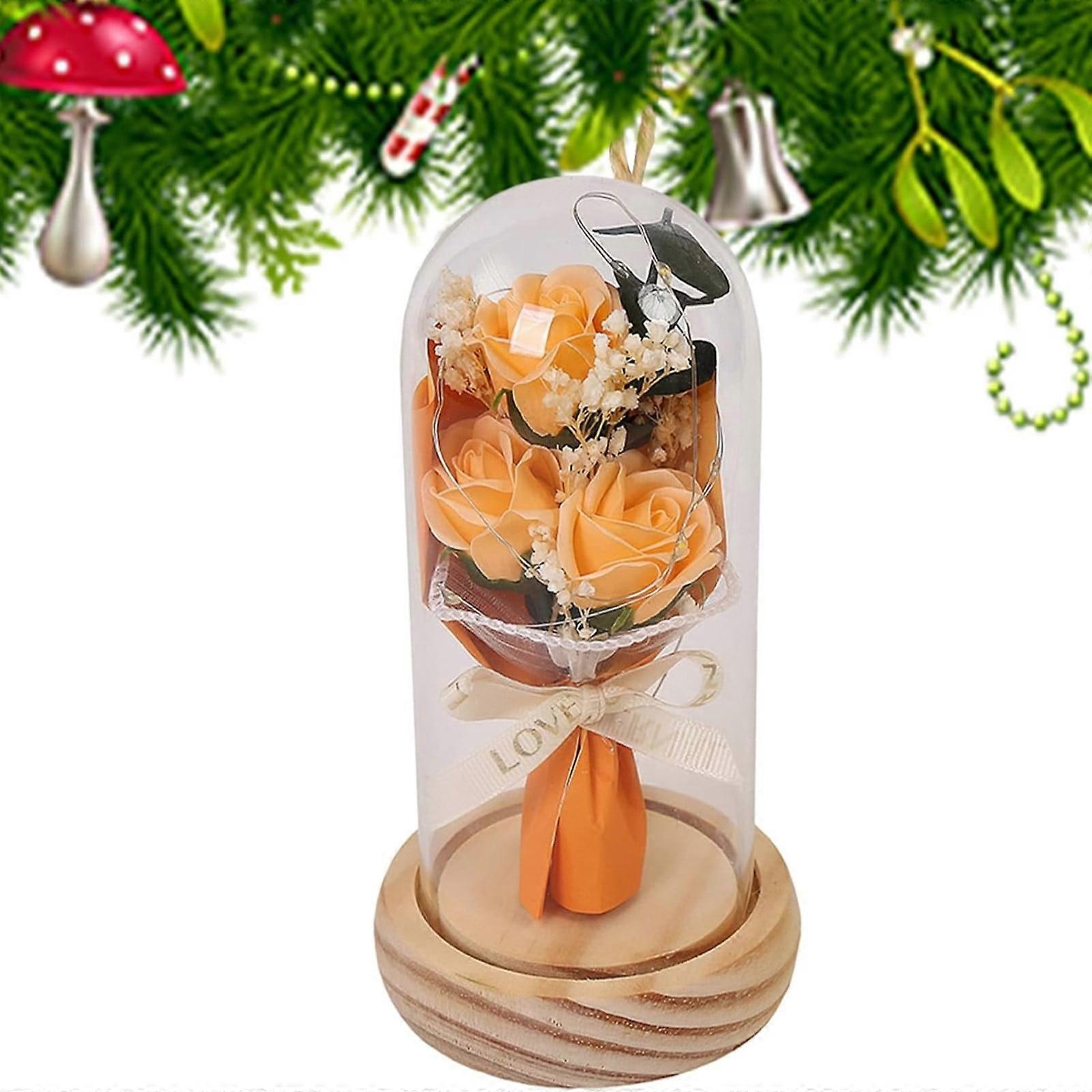 Rose in Glass Dome Handmade Rose Light Up in Glass Dome Women Idea Birthday Home Decor Preserved Rose Rose Red Silk Rose for Girls