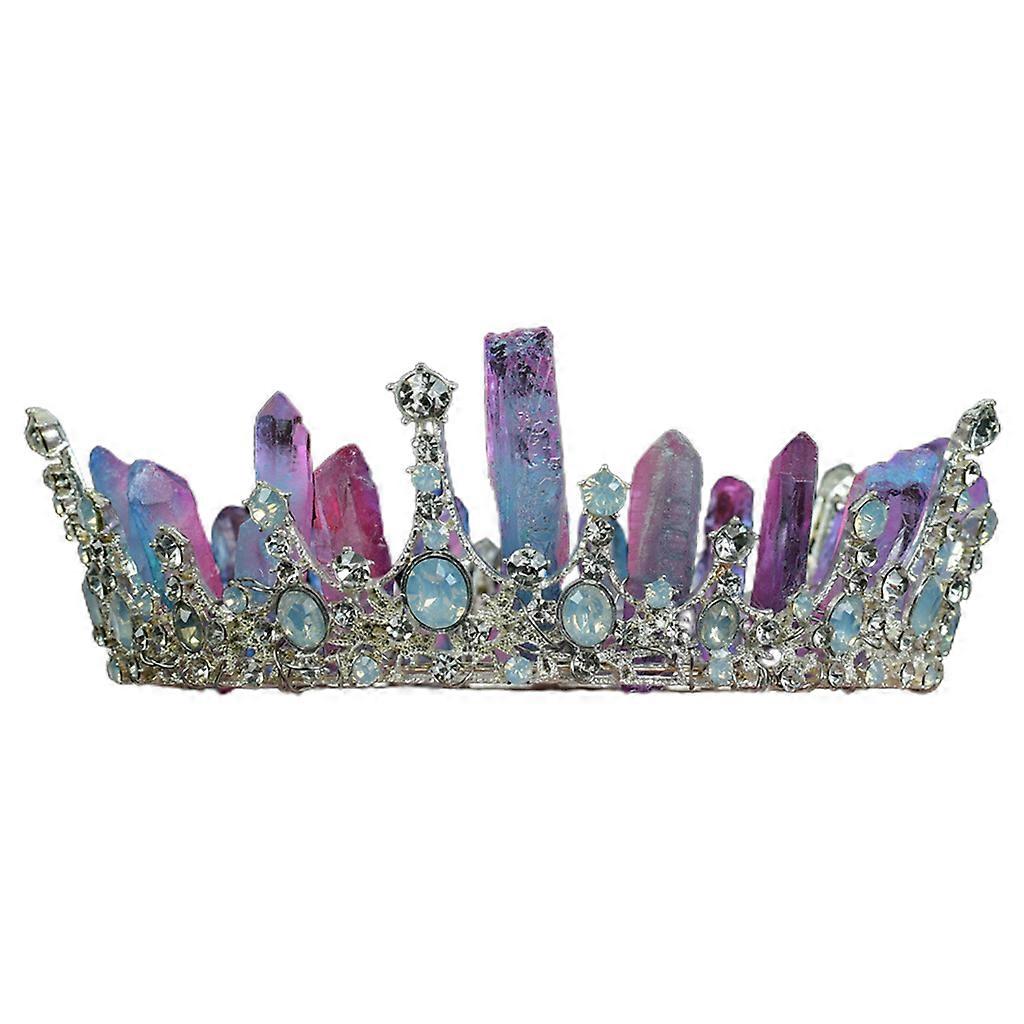 Purple Quartz Tiara for Raw Crystal Crowns Elegant Bridal Crown Wedding Tiaras Vintage Pageant Prom Costume Accessories Multicolor
