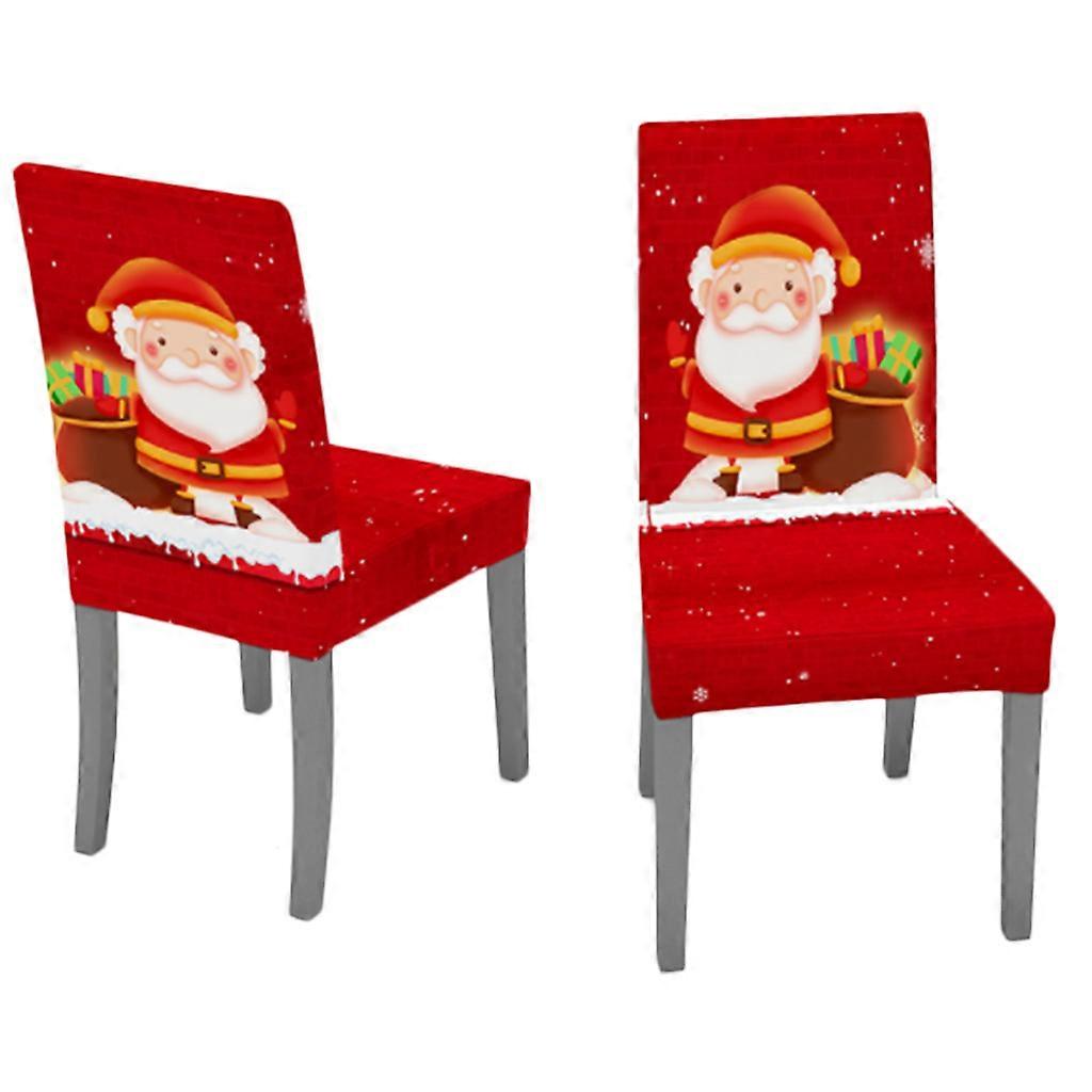 2Pcs Christmas Chair Cover Decoration Santa Claus Jingle Bell Pattern Stretch Removable Slipcover Protector for Case One size