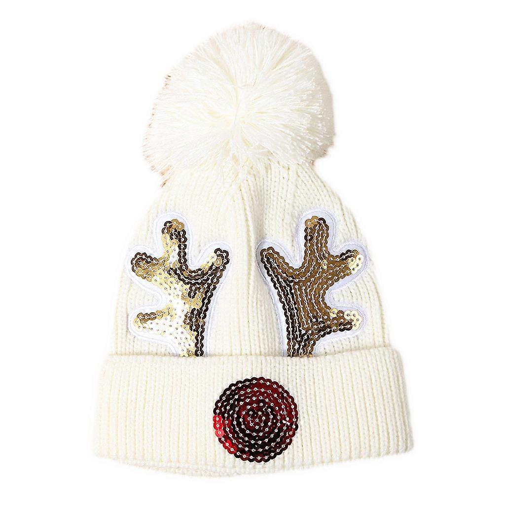 Christmas Hats for Kids With Deer Horn Ornament -Santa- Hats for Children Winter Hats Knitted for Boys Girls white