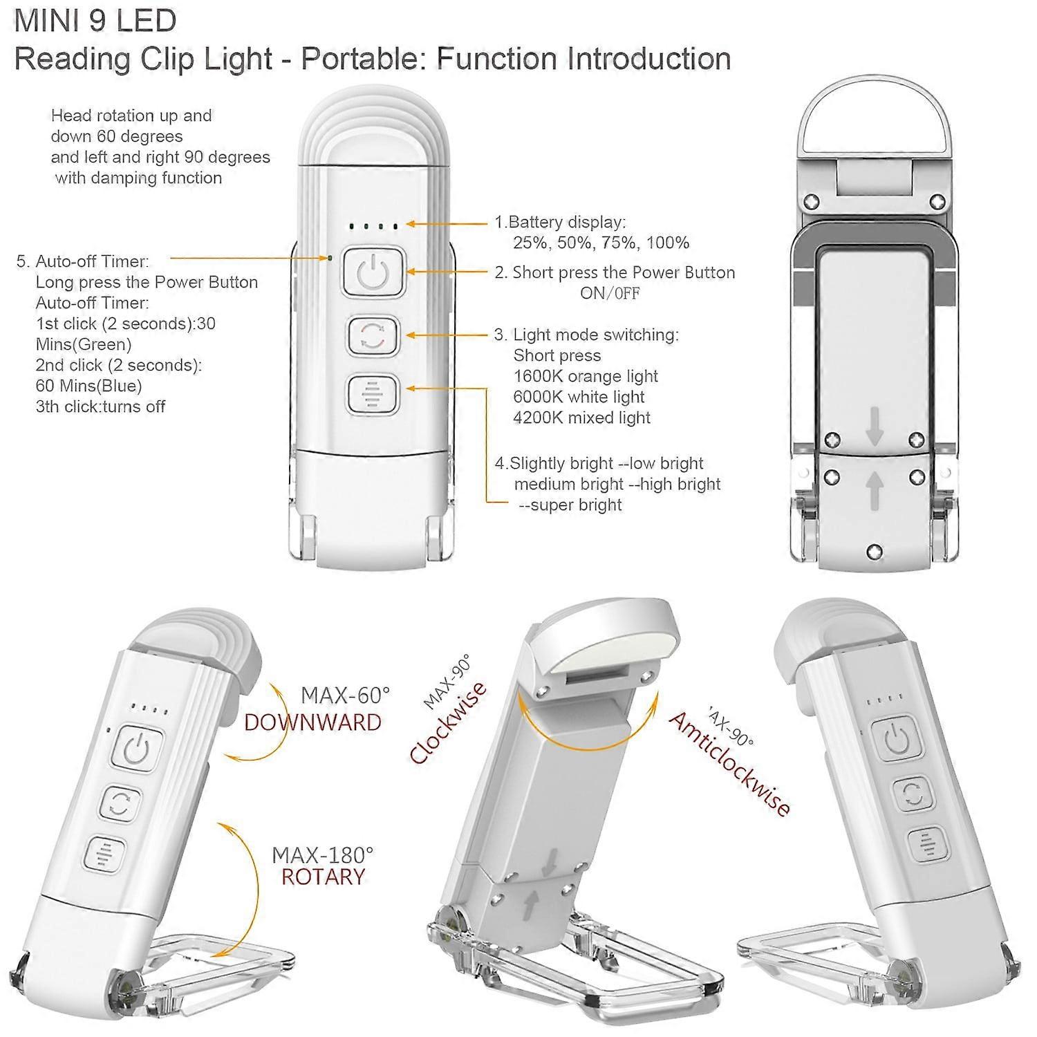 Luckky USB Rechargeable Book Light, Clip-on LED Reading Lamp with 5 Brightness Levels, Compatible with Books for Kids & Adults (White)