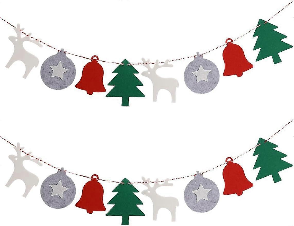 1Set Christmas Banner Flag with 16Pcs Pendants, 3M Rope, Ball & Deer & Tree & Bell Cloth Bunting for Indoor Outdoor Holiday Decor
