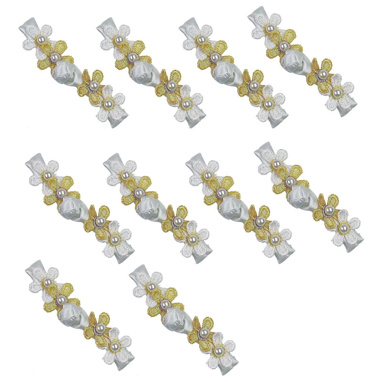 10PCS Decorative Flower Snap Buttons For Kids Garment Soft Satined Beads Closure Button Costume Sewing Accessories White
