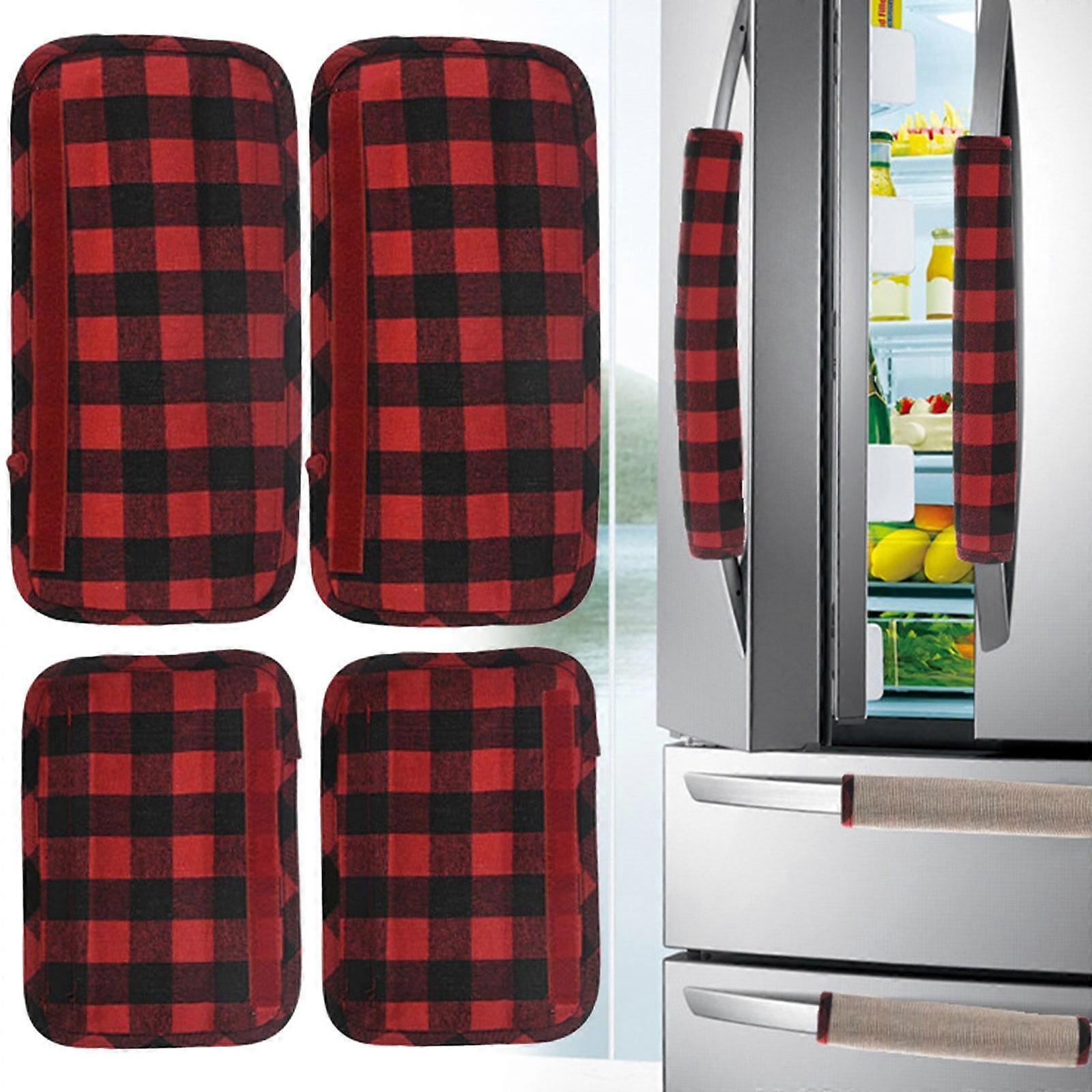 Yakbaofuo Christmas Plaid Refrigerator Handle Set of 4, Red & Black, Compatible with Kitchen Appliances, Microwave, Fridge, Dishwasher Door Handle