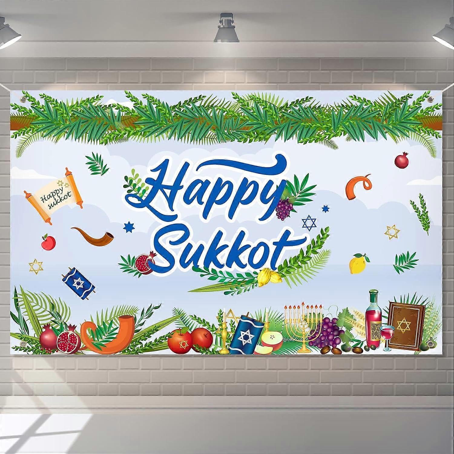 6x4Ft Happy Sukkot Party Banner, Compatible with Jewish Tapestry Decorations, Photo Booth & Wedding Background