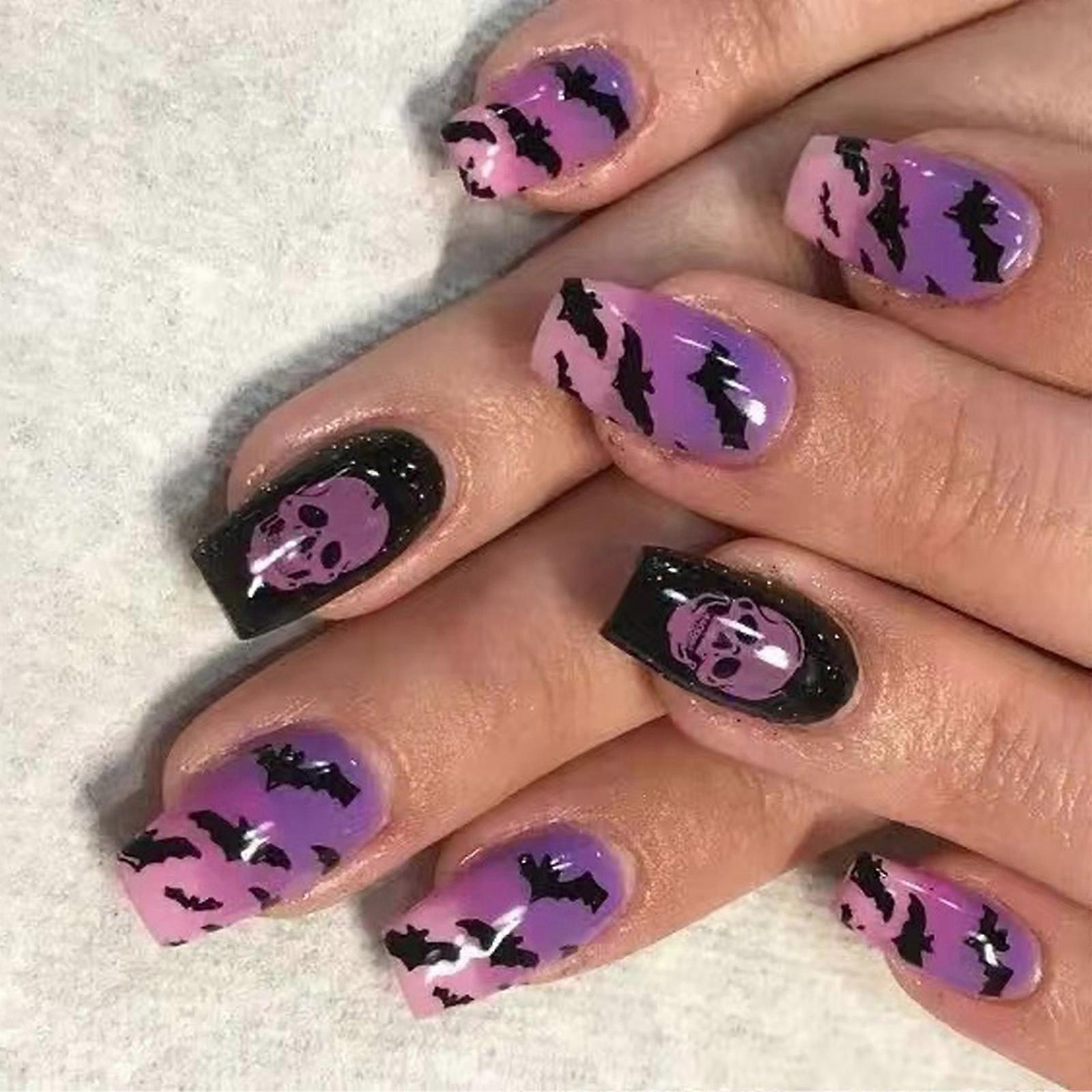 Halloween Party with Mysterious Bat Skull Patterns and ABS Construction for Women’s Nail Enhancement Multicolor