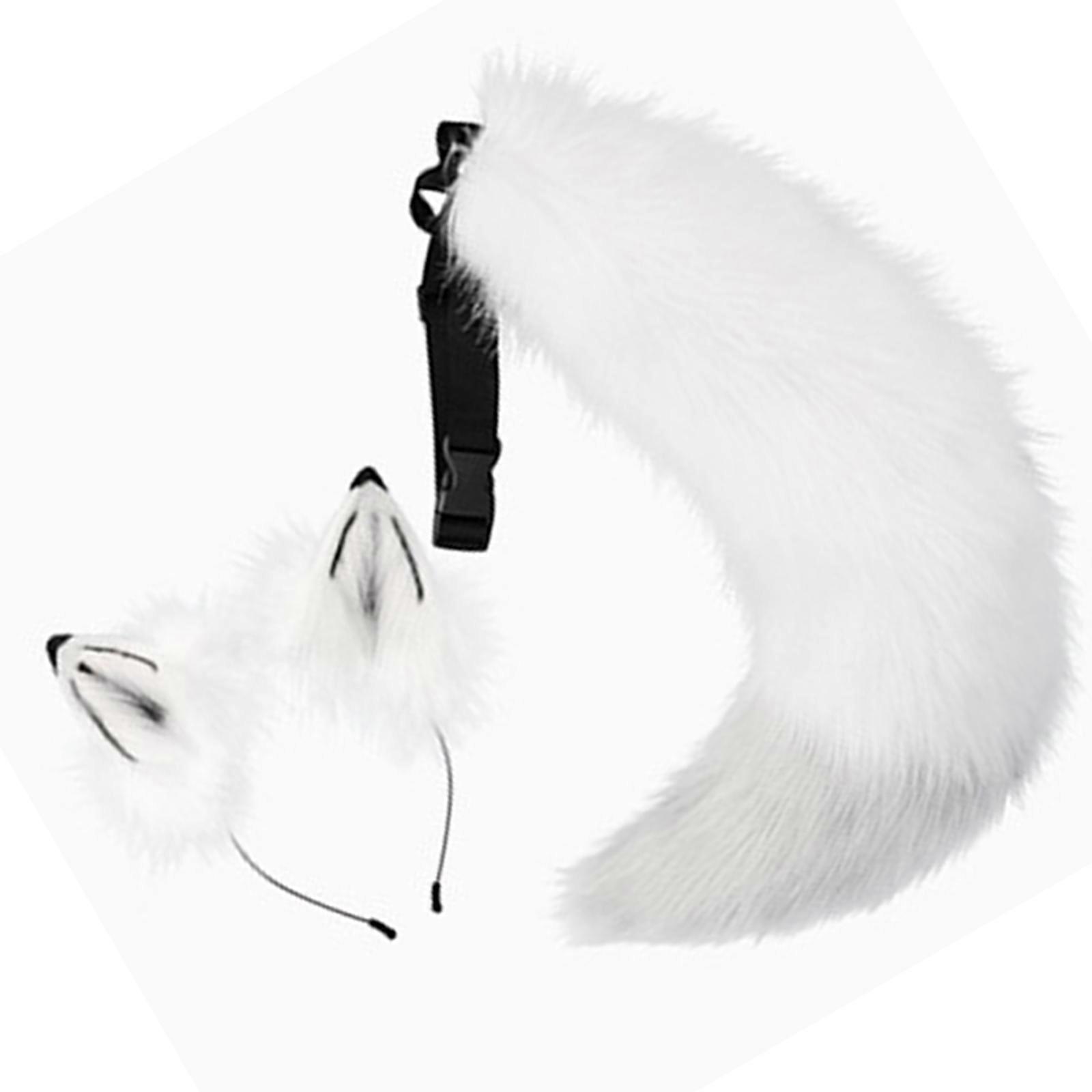 Handmade Plush Wolf Ears Headbands Fauxs Furs Tail for Halloween Cosplay Party Costumes Accessories for Kids Adult White gray