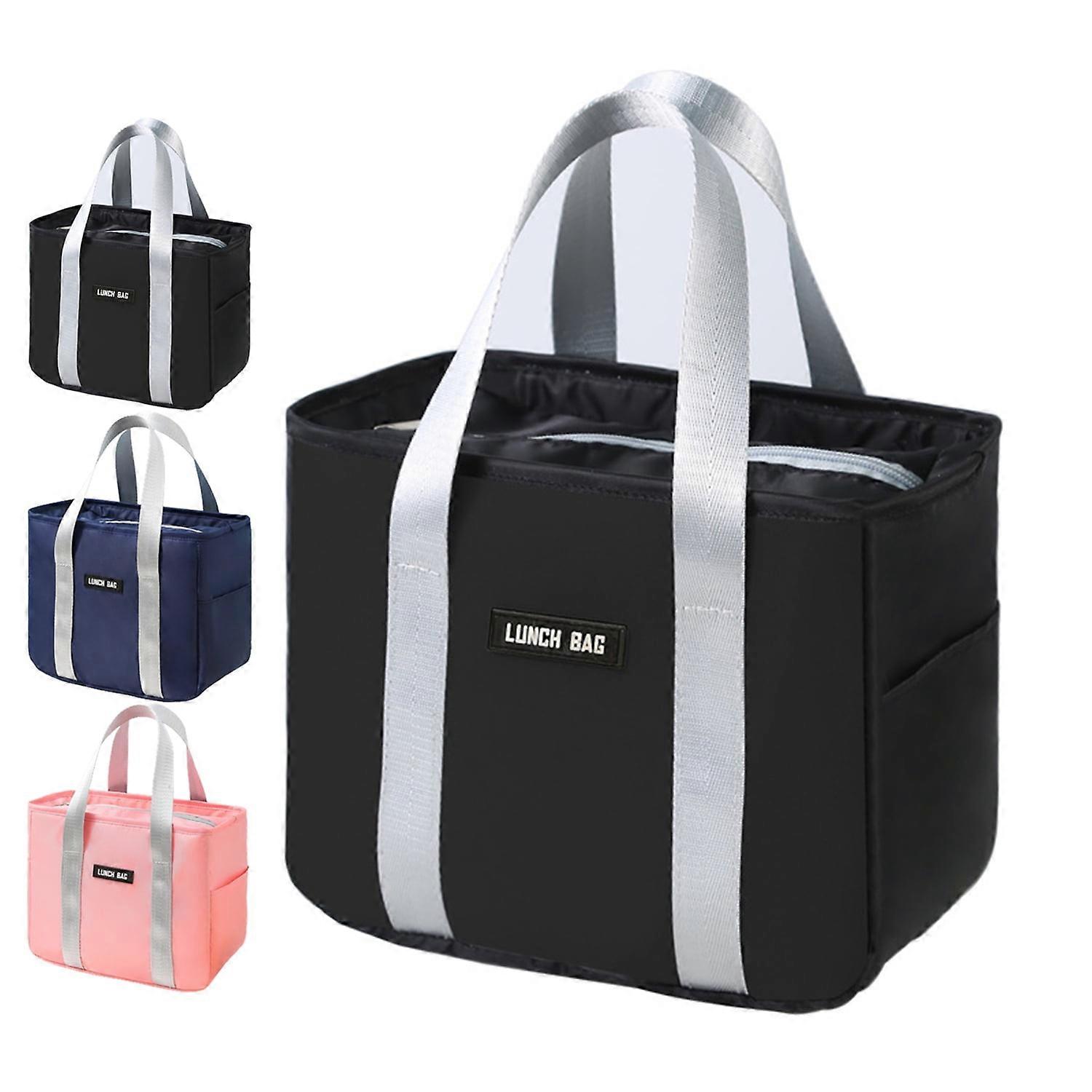 Portable Lunch Bag Thermal Insulated Lunch Box Tote Cooler Functional Handbag Student Bento Pouch School Food Storage Bags(Black)