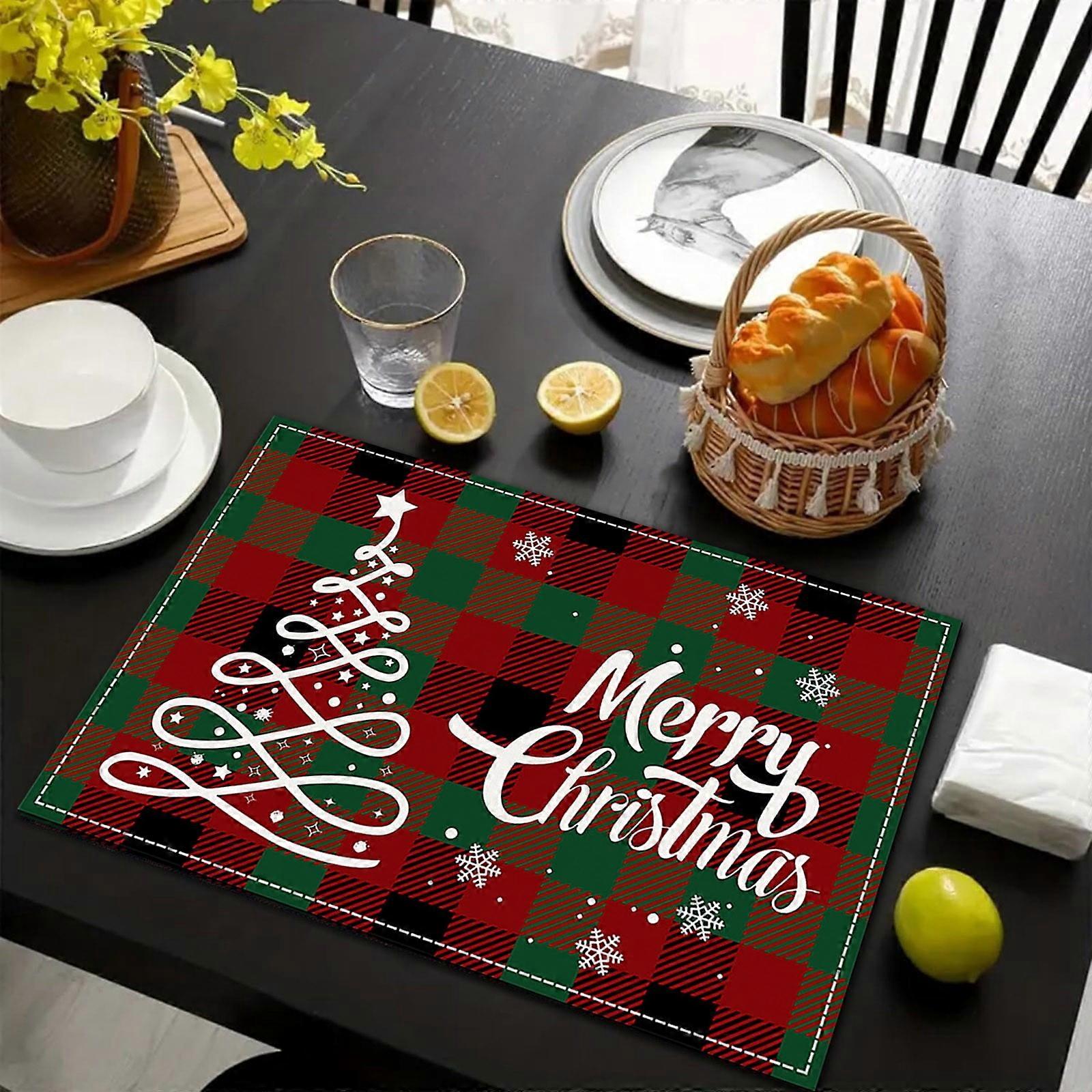 Christmas Placemats Heat Resistant, Embroidered Table Mat for Party, Restaurant, Living Room Decoration, Insulated
