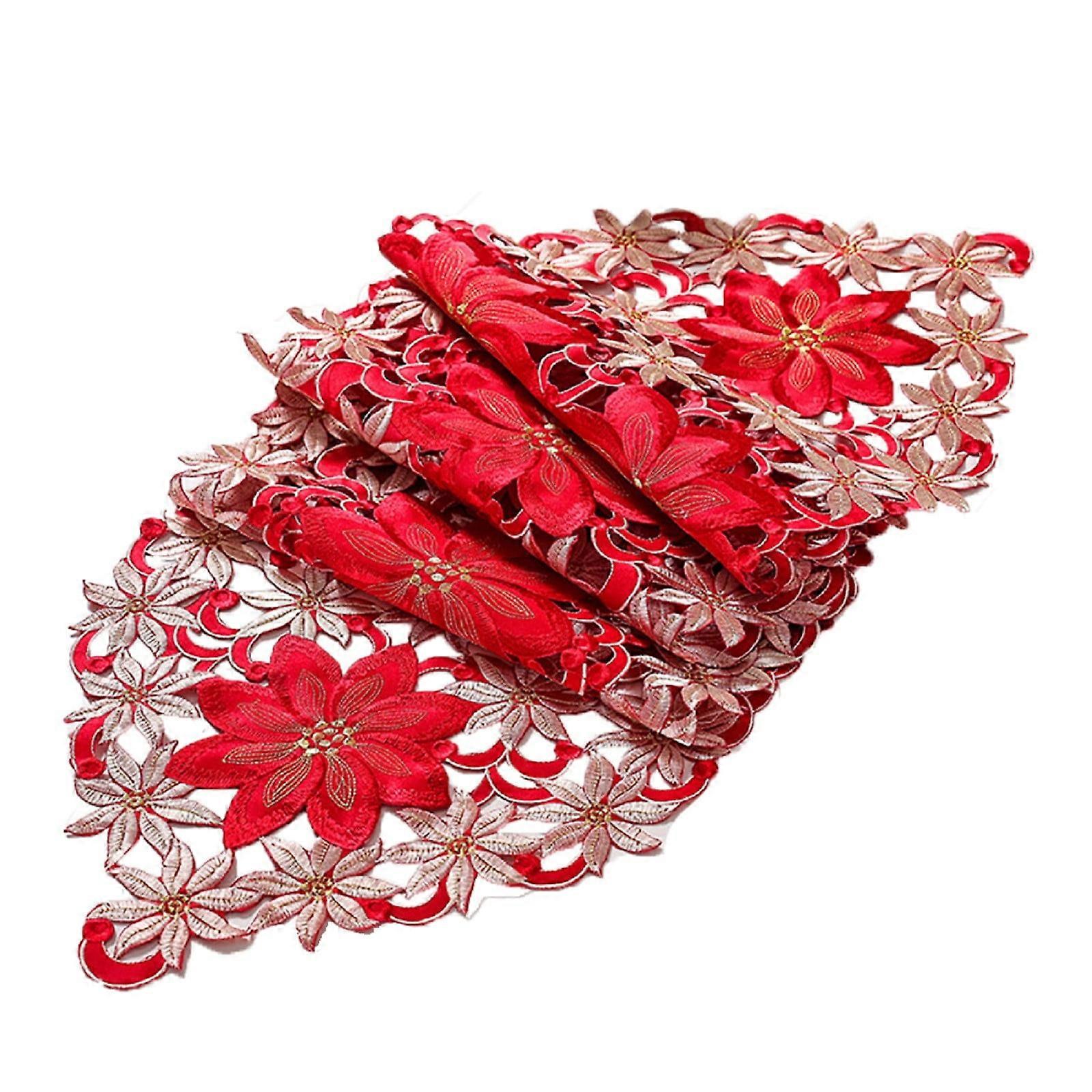 Kitchen Gadgets Clearance! Christmas Flower Embroidery Table Flag, Red Tablecloth 14.96x69.29 Inches, Home Dining Decoration, Home Gift