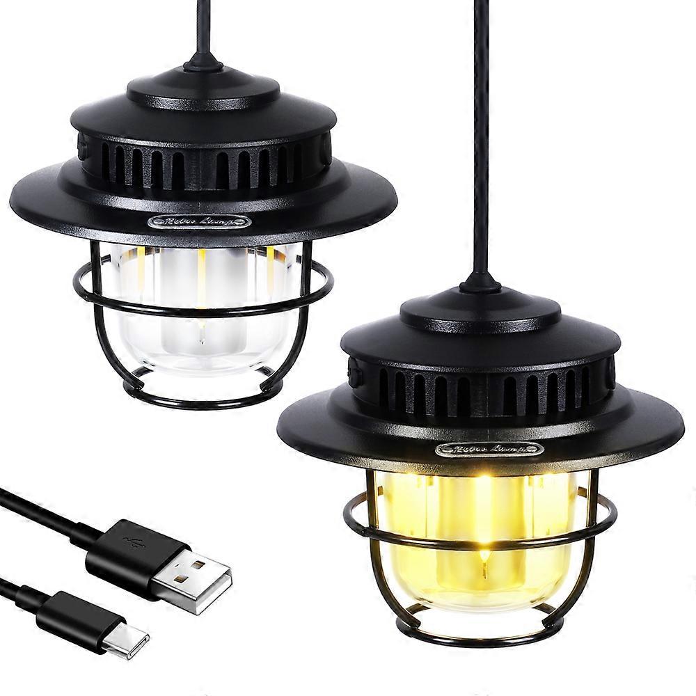 LED Vintage Lantern, USB Rechargeable, Portable Waterproof Camping Light, Indoor Outdoor Hanging Tent Lamp, Black
